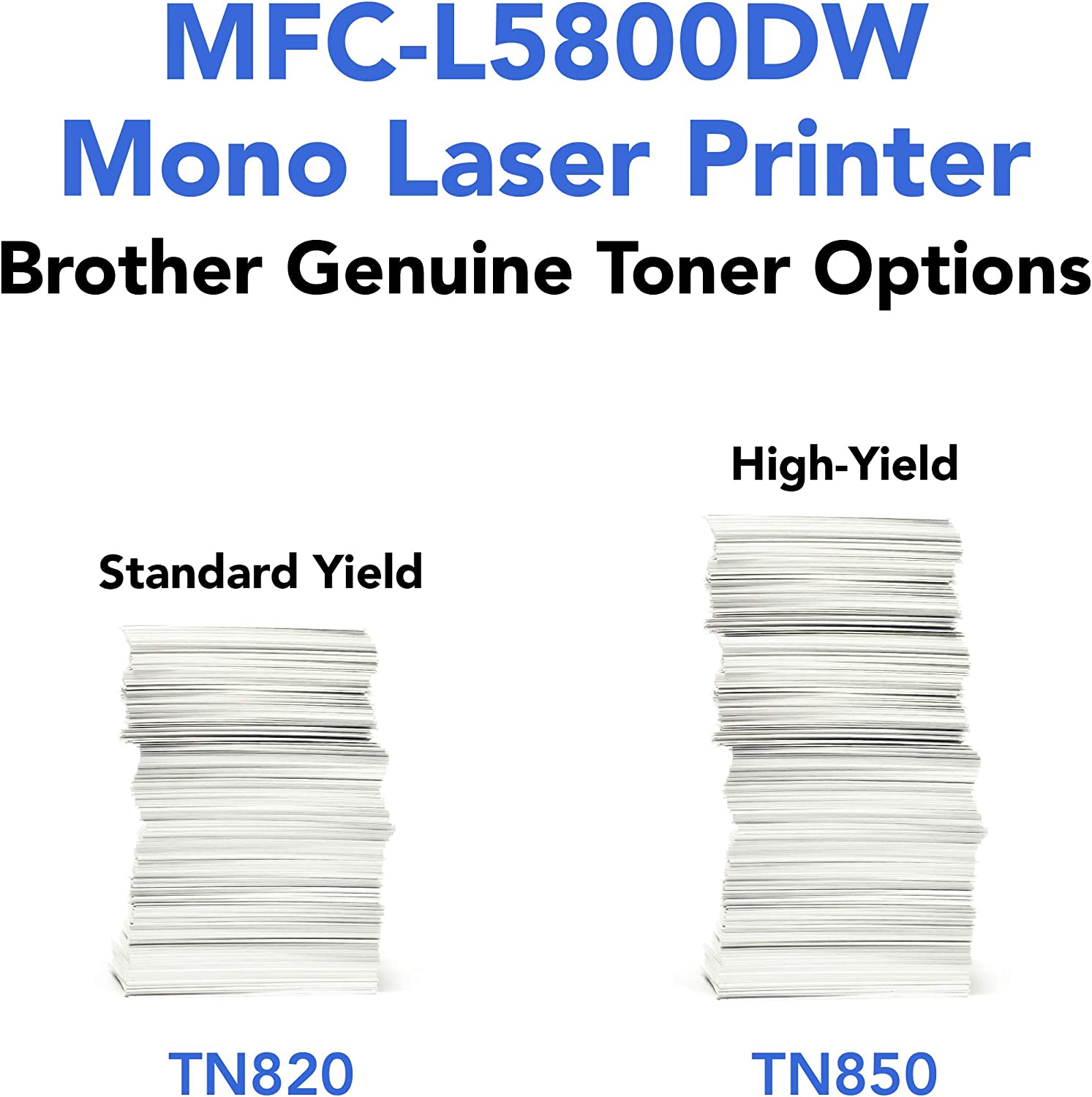 • FOR USE WITH BROTHER GENUINE TONERS: TN820 Standard Yield Toner, TN850 High Yield Toner for cost efficient output. Copy Resolution 1200 x 600 dpi