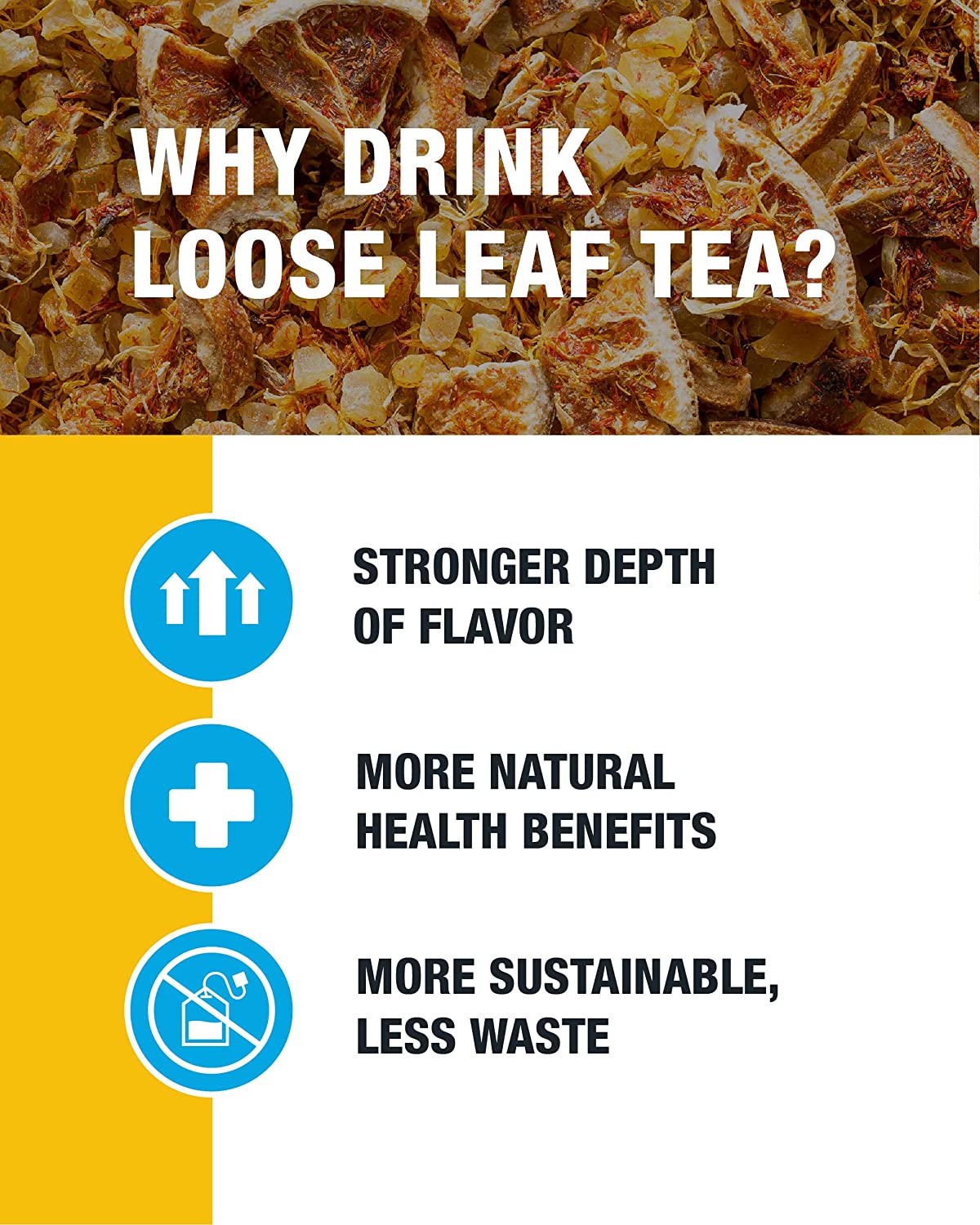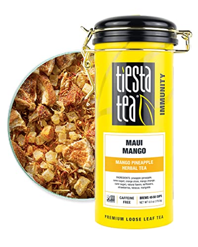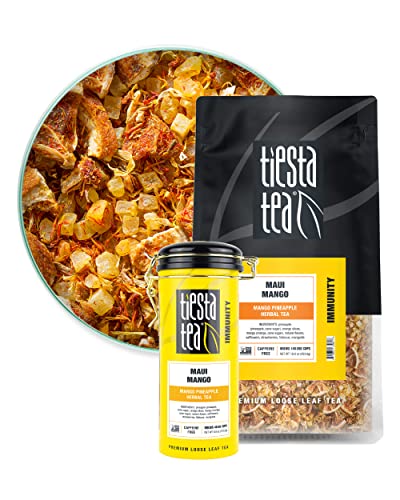 • PREMIUM LOOSE LEAF TEA BLEND of mango, pineapple + oranges is a caffeine free tea and immunity booster; premium ingredients that you can see, smell, and taste; ditch the single-use herbal tea bags; discover the loose leaf difference