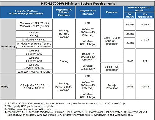 • Mobile printing & scanning: The Brother MFCL5700DW allows you to connect via wireless devices and submit scanning and printing jobs remotely (1)