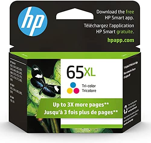 HP 65XL Tri-color High-yield Ink Cartridge | Works with HP AMP 100 Series, HP DeskJet 2600, 3700 Series, HP ENVY 5000 Series | Eligible for Instant Ink | N9K03AN