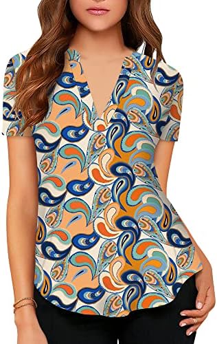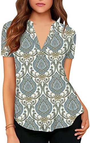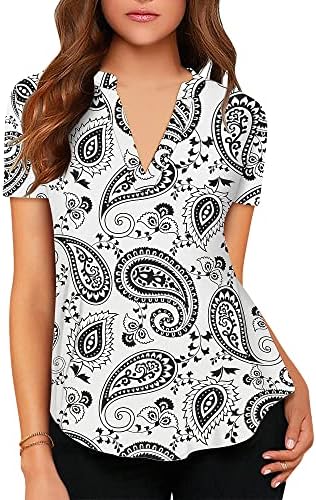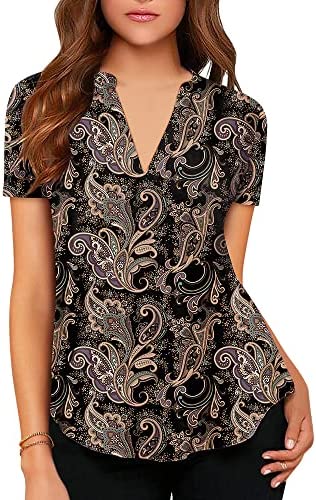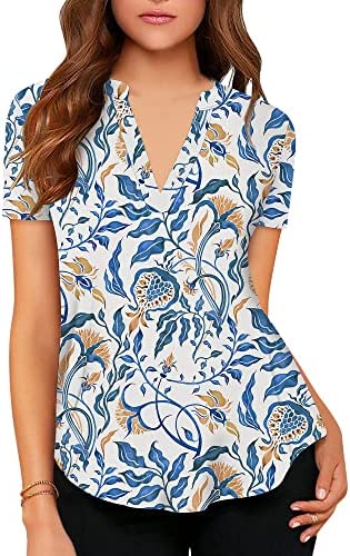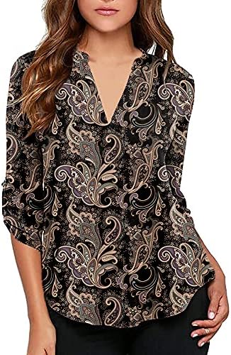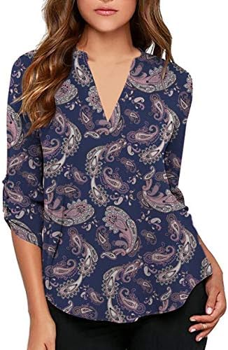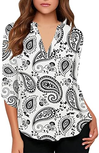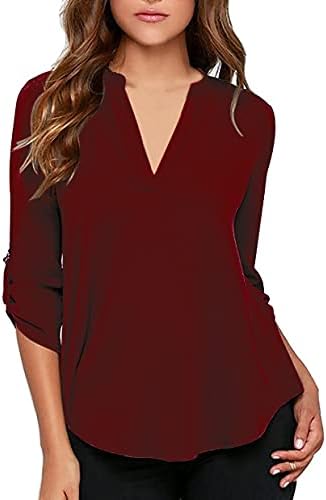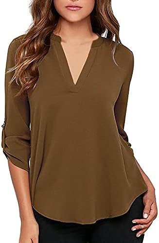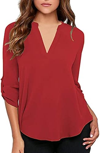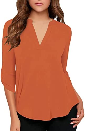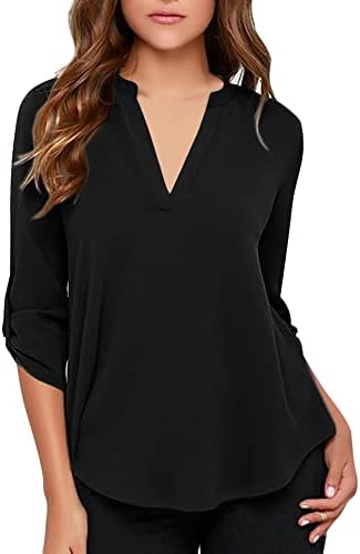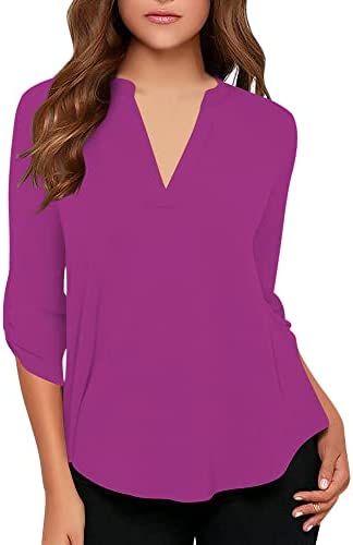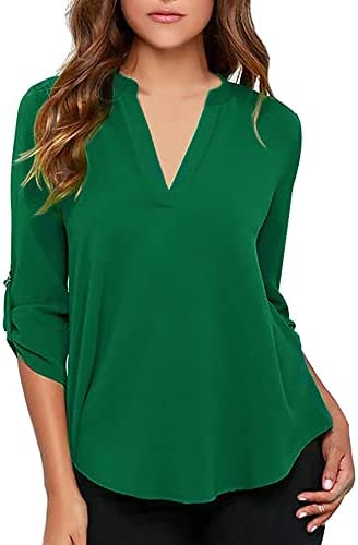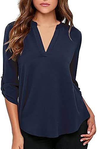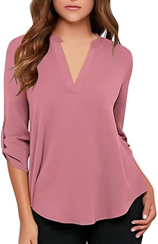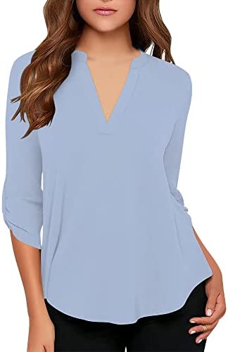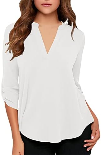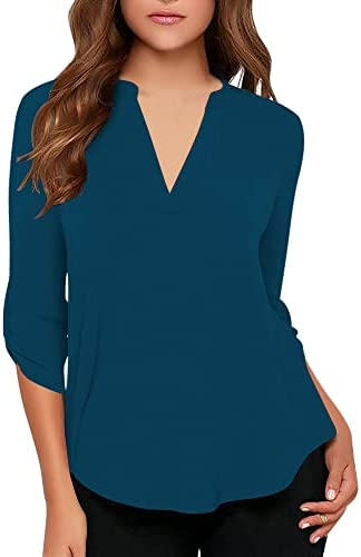 roswear Women's Business Casual V Neck Cuffed Sleeves Work Blouse Top