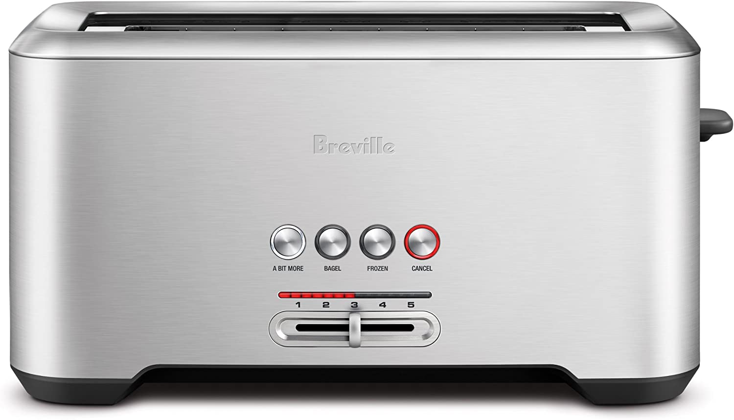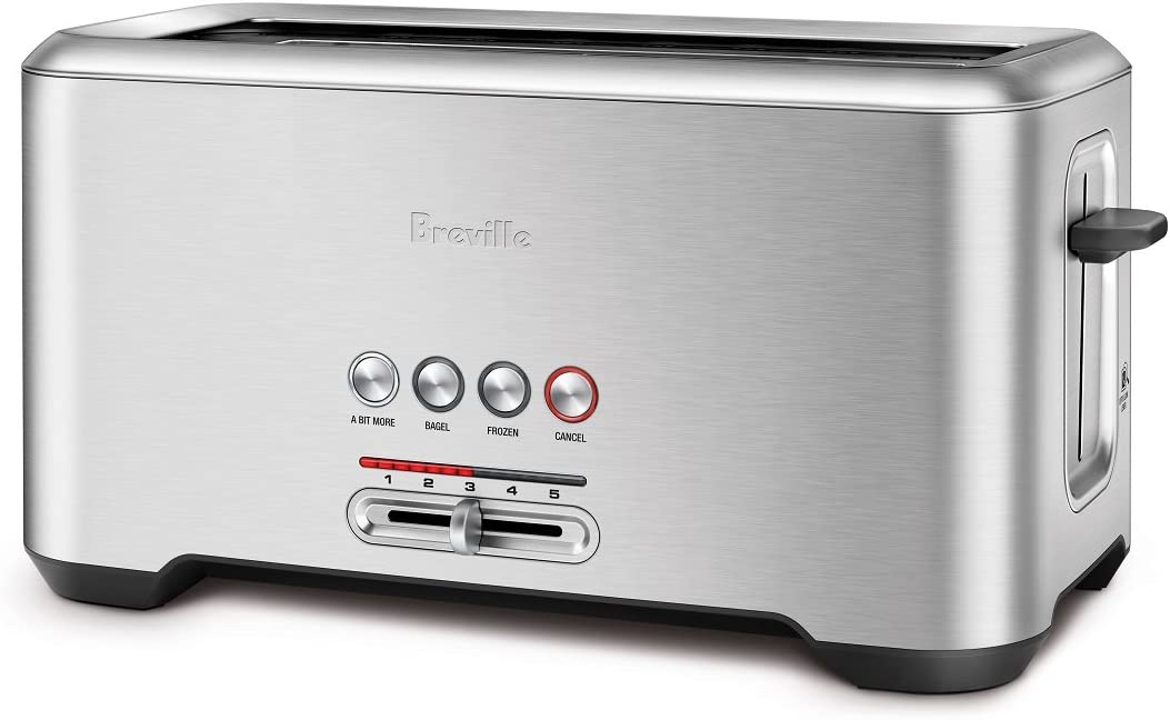 • The Breville Bit More is a long 4-slice toaster with an LED that allows you to monitor your progress; If you feel you need 'A Bit More' simply press a button to add a little extra time to the toasting cycle or check on your toast with "Lift & Look"