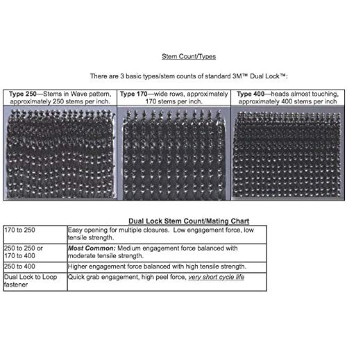 Dual lock only has one type of side; unlike velcro where there are a separate hook and a loop side; so rolls are typically cut in half and then mated or connected so a 10-foot roll would be used as two 5-foot strips. Made in the U.S.