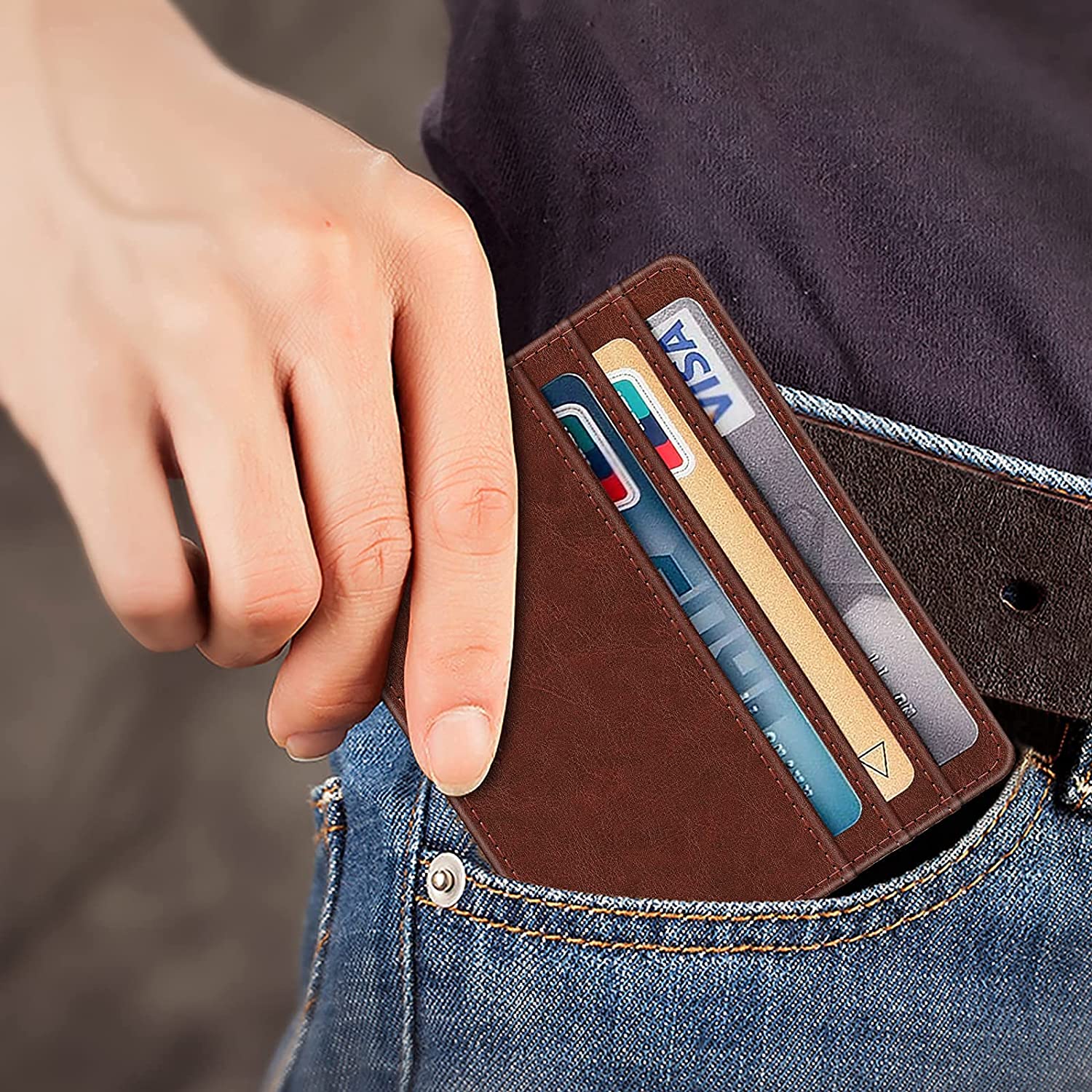 Features 3 card slots on one side where you can put 1-2 cards into each card slot, and one type with an ID card window where you can put your IDs or driver license