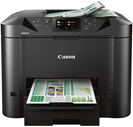 The Canon MAXIFY MB5420 Wireless Small Office All-In-One Printer is designed to meet the needs of smaller businesses with up to nine users, by delivering high-quality, low-cost prints. It boasts a quick first printout time as fast as 6 seconds with fast print speeds up to 24 ipm (B&W)/15. 5 ipm (Color) getting your prints you need when you need them. Power through paperwork with single-pass duplex scanning which simultaneously scans both sides of two-sided documents, enabling fast multi-page copying and scanning. The MB5420 is built for big jobs with a 500 sheet paper tray capacity, and a high page yield of 2500 B&W/1500 color prints when using XL ink tanks. Always stay connected and informed with built-in standard Management Information Base (MIB) support, which allows you to easily manage the MAXIFY printers on your network. Built-in Wi-Fi networking makes it easy to connect and print from your computer and favorite mobile devices, and with the Canon PRINT app, you have the added features of being able to print from the cloud and scan directly to your mobile device. Best of all, the MB5420 printer is backed by 100% U. S. -based customer service & support.