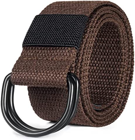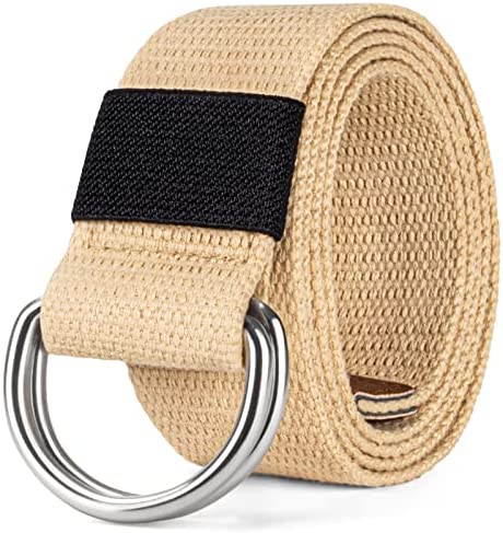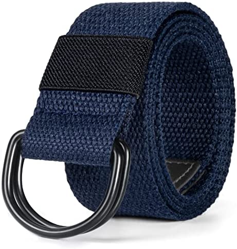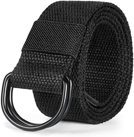 Army green anvas cweb waistband featured with black double D-rings sewn to belt, 0.2" diameter D-ring, stronger than thin buckles
