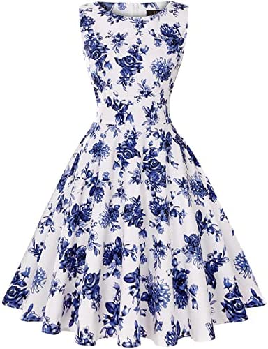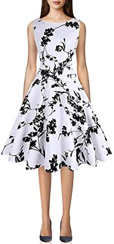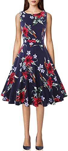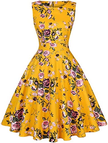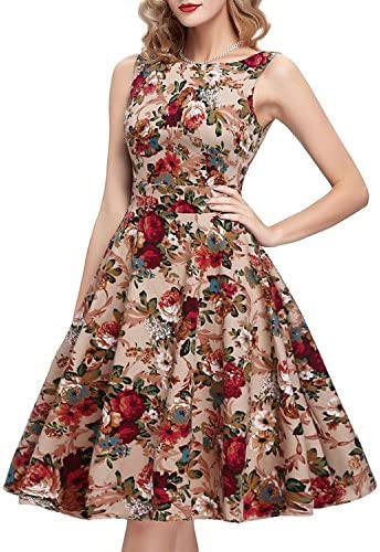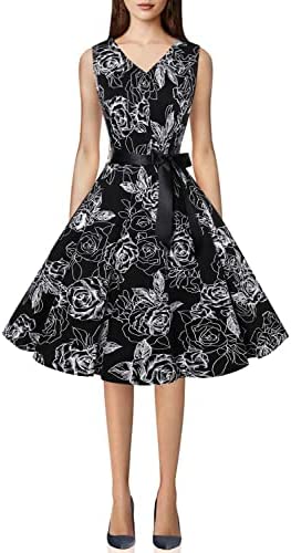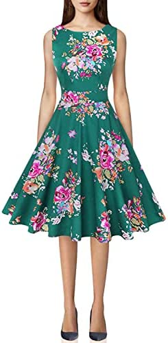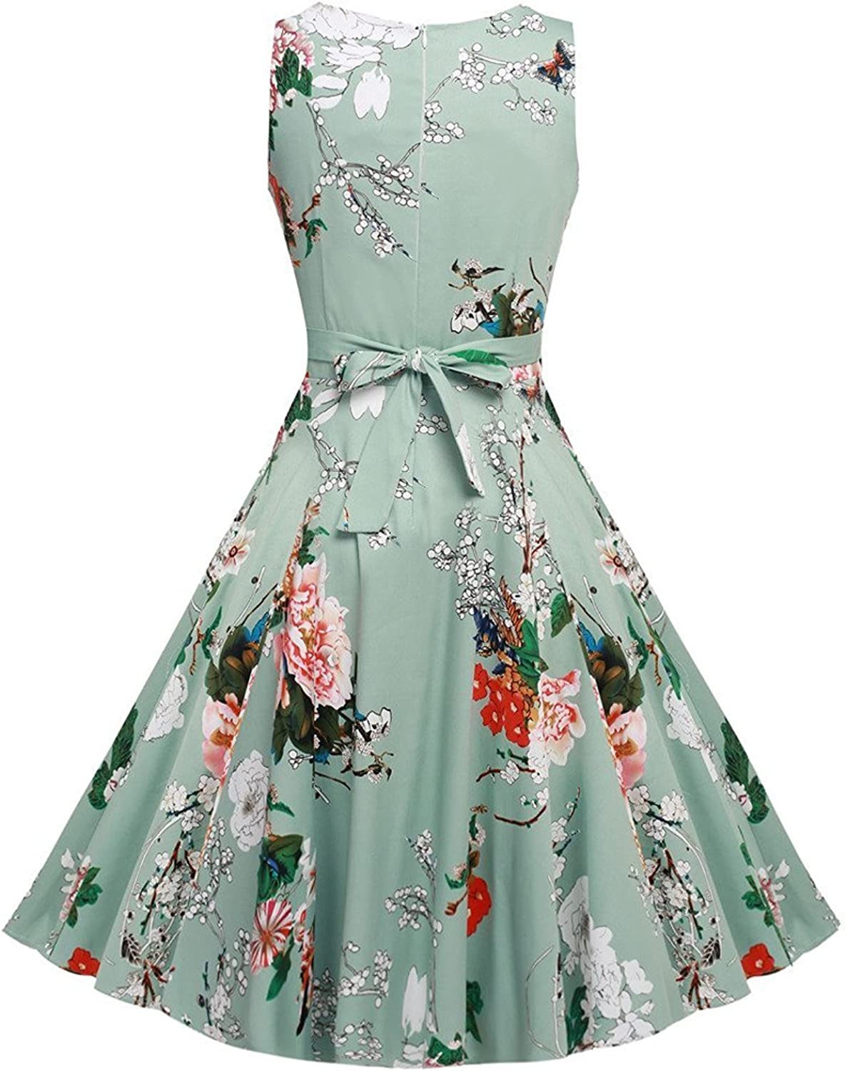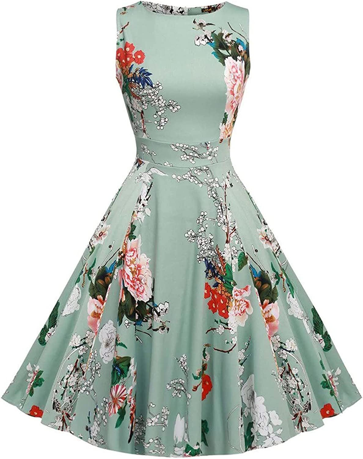 IHOT Vintage Tea Dress 1950's Floral Flare Casual Garden Retro Swing Party Cocktail Dress for Women