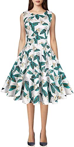 • Boatneck, Sleeveless, Knee length, A line Swing, Fit Flared,Concealed zipper at back, All kinds of patterns,Casual Vintage 1950'S Classical Cutting.