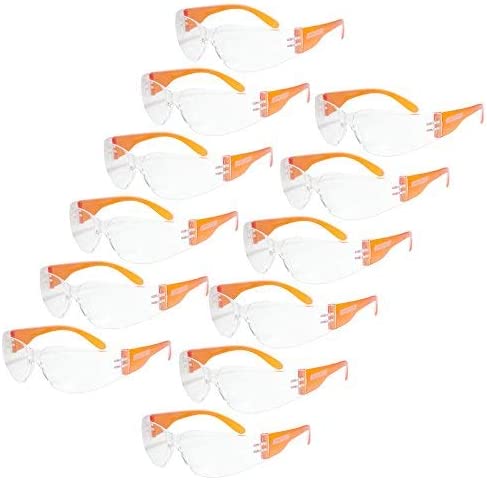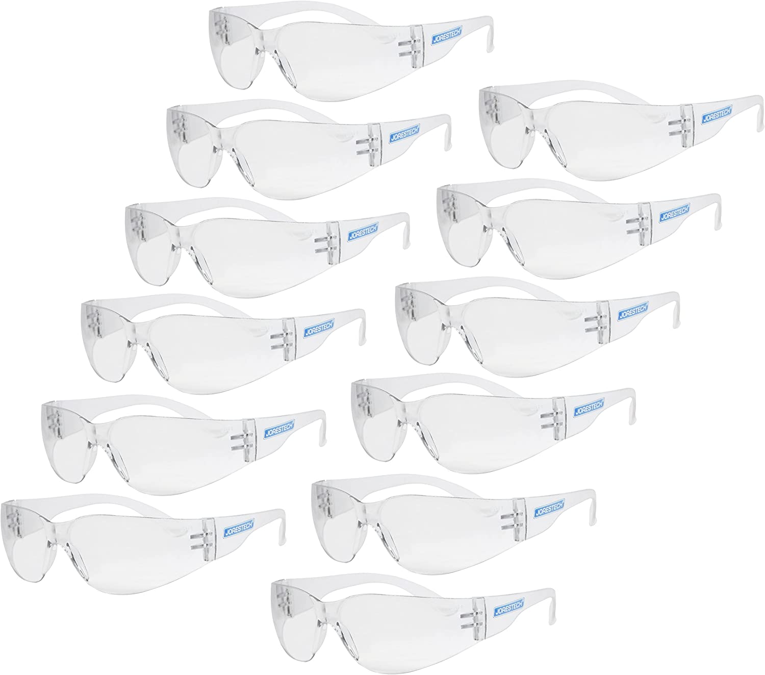 JORESTECH Eyewear Protective Safety Glasses, Polycarbonate Impact Resistant Lens Pack of 12 (Clear)
