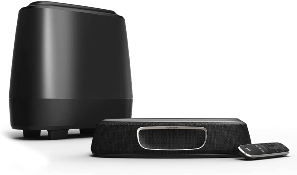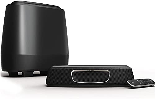 The MagniFi Mini delivers the big, room-filling home theater experience you’d expect from a full-size sound bar in an ultra-compact design. Compatible with most TVs, it’s easy to set up and features Polk’s Voice Adjust and SDA surround sound technologies with 5.1 Dolby Digital decoding, ensuring crystal clear dialogue and immersive surround sound—plus an included wireless subwoofer for deep bass impact you can feel. Convenient to use as it works with any TV, cable box or satellite IR remote control—no need for two remotes. Stream your favorite music through Bluetooth, and Google Home Chromecast for Audio. The one-button Night Mode lowers the bass and increases Voice Adjust delivering clear dialogue all without raising the master volume.