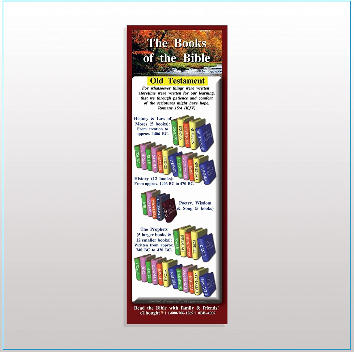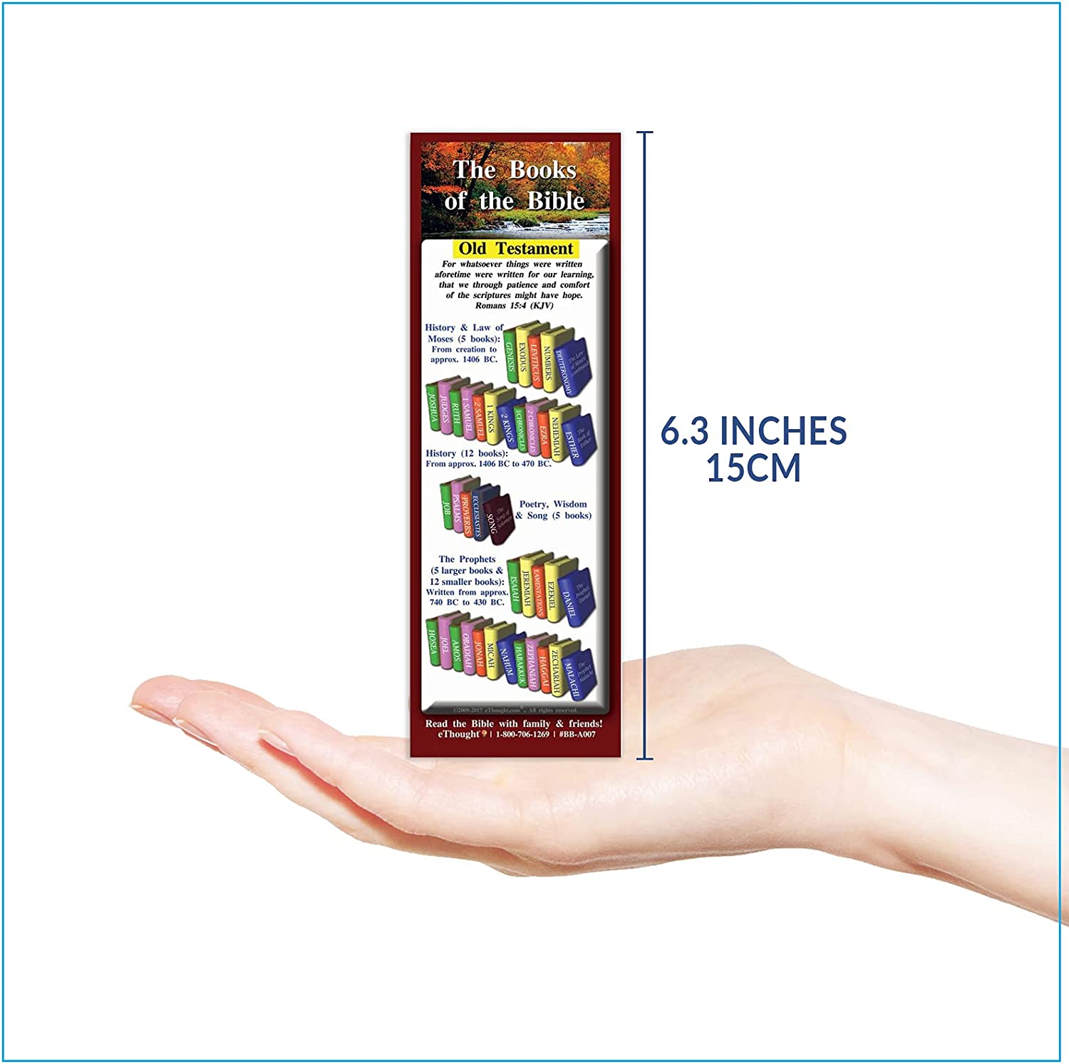 Learn the books of the Bible with our handy study guide! Learning and memorizing the books of the bible is very important for Bible study, but it can feel like a daunting task! If you need a helping hand and are looking for an easy approach to navigating the Old Testament and New Testament without any difficulty, then our Books of the Bible Bookmarks are the ideal solution. Our Bible study cards are presented in an easy-to-read format that organizes the books of the Bible by Old Testament and New Testament, and each card is double-sided and printed in full color. Great for new believers and seasoned spiritual warriors alike, our Bible study cards will help make your daily devotionals a little bit easier by showing you exactly where each book is located. Our Books of the Bible bookmarks are available in English and Spanish. Take them with you anywhere Our scripture devotional cards are compact enough to carry with you in your pocket, can be used as a bookmark, and are a great reminder to read your Bible on a daily basis. They give you the needed structure that you need so that you can rise to the challenge of studying the living Word from the beginning to the end without getting overwhelmed. Each set includes 25 individual Bible study cards that measure approximately 8.25 x 2.75 inches each. Makes a great gift for your spiritual or religious friends, family, and coworkers! Our customers use these in many ways including as handouts for morning prayer meetings, sharing of faith, encouraging Bible verse memorization, children's ministry, discipleship group, as a handy bookmark, or a gift for Sunday school, vacation Bible school, Bible classes, group study, and more. They can even be used as stocking stuffers!