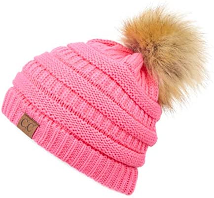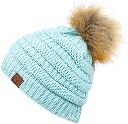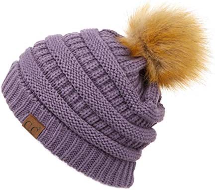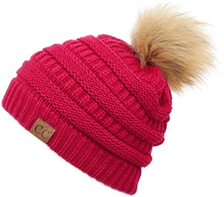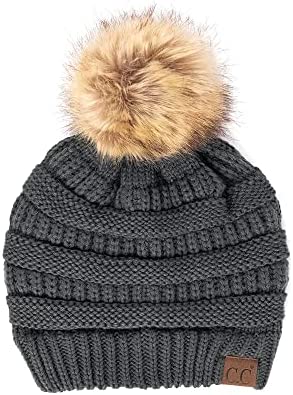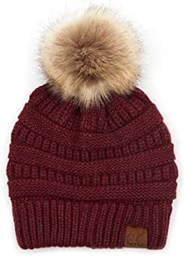 Unisex Knitted Beanie with Faux Fur Pom