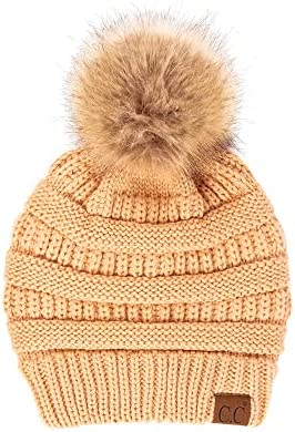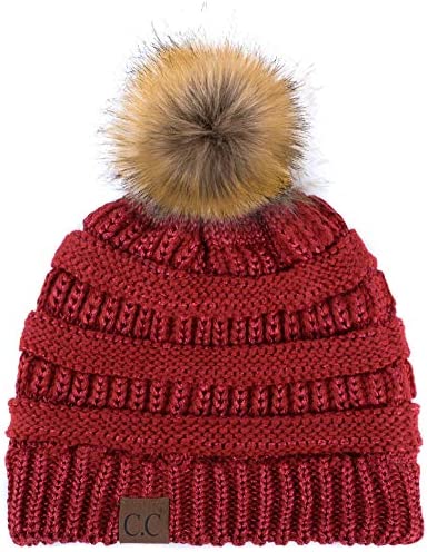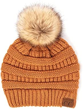 C.C Hatsandscarf Exclusives Unisex Solid Ribbed Beanie with Pom (HAT-43)