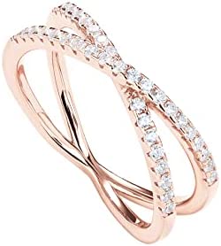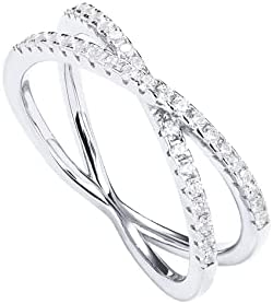 • Two bands of brilliant prong-set round CZ intersect each other in a criss-cross design and look stunning.