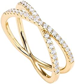 PAVOI 14K Gold Plated X Ring Simulated Diamond CZ Criss Cross Ring for Women