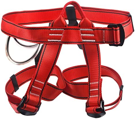 [TOOL RING]:There is 2 tool ring on the right side of the rock climbing Seat Belts, which makes it so easy to carry more climbing rope, chalk bag, belay device or other tree climbing gear rappelling gear. Two steel Adjustable Wait and Leg buckles allow waist belt to be adjusted and secured in a single movement.
