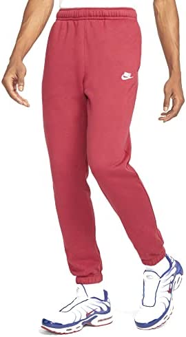 Rise above any challenge in the Nike Men's Sportswear Cuffed Fleece Sweatpants. The ultra-soft fleece fabric allows you to retain body heat in cooler conditions, while an elastic waistband adjusts the fit so you stay comfortable all day. A straight-leg style enhances natural mobility, and cuffed hems lock in warmth. Side and back pockets provide storage for on-the-go training, making the pants effortlessly versatile.