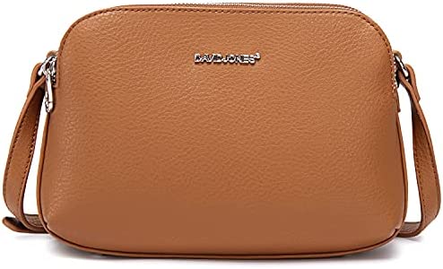 MATERIAL:Silky feel Soft PU Leather Functional 3 Zip pockets Compartments Crossbody Purse for women and girls.Sturdy to keep it's shape and stand up on its own.Wipe clean easily!Quality silver hardware.