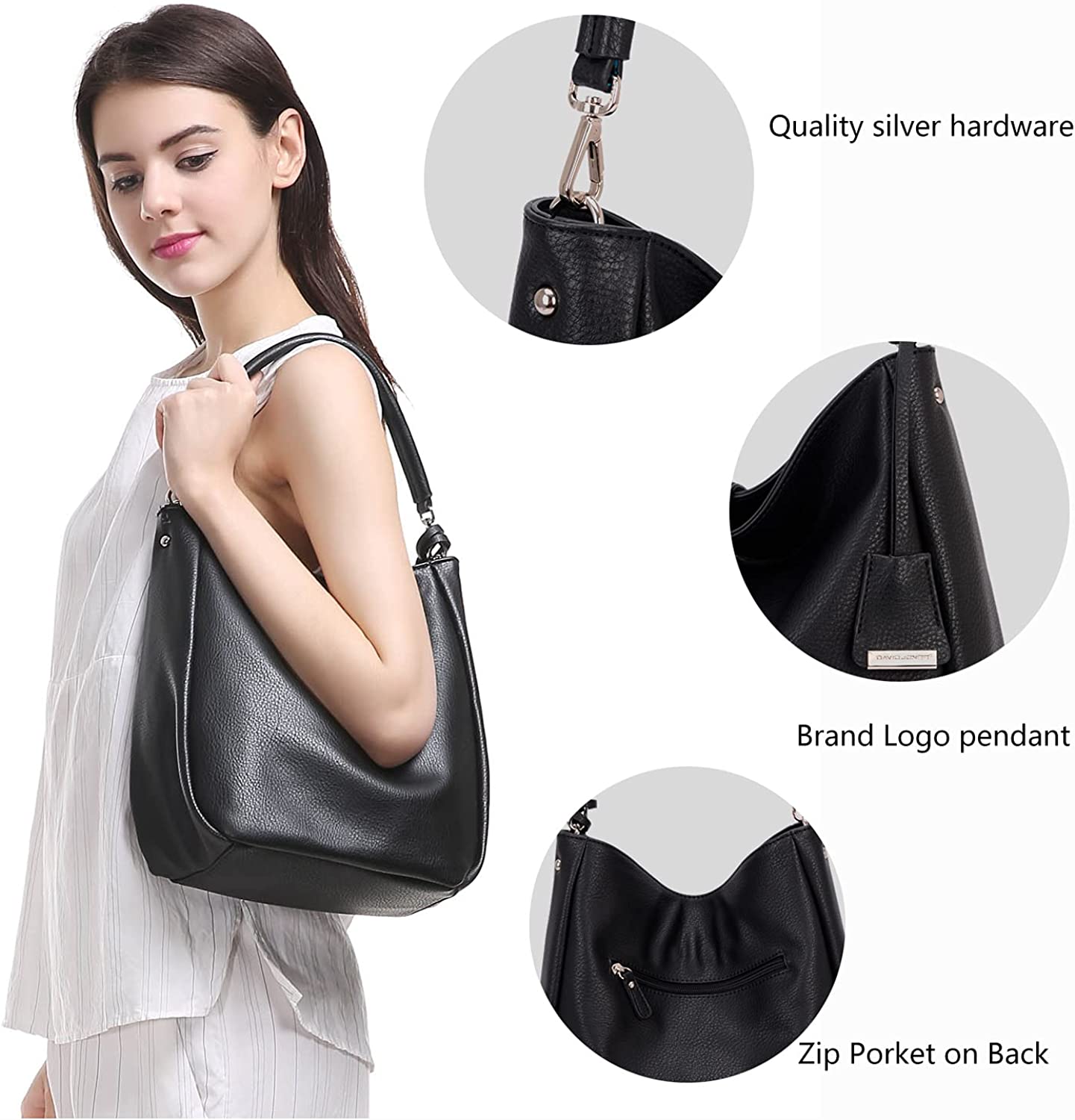 • MATERIAL: Soft and Supple waterproof Vegan Leather hobo bags for women.Sturdy and Wipe clean easily!Gorgeous SILVER hardware accents it chic and fashionable.