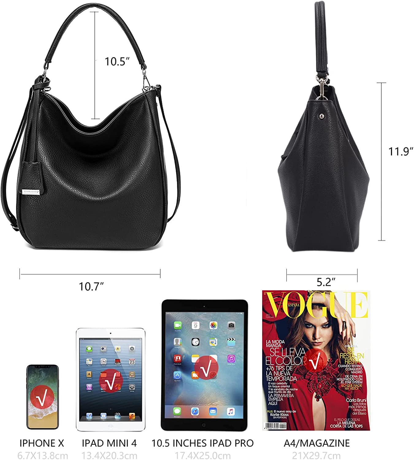 • DIMENSION:Medium Size 10.7"(L)x5.2"(W)x11.9"(H) Big Size 12.3x6x13 Roomy and Capacity bags for women;2 Detachable Straps.52.8" Adjustable long shoulder strap.Lightweight satchel bags for women:M 1.32LB L 1.76LB