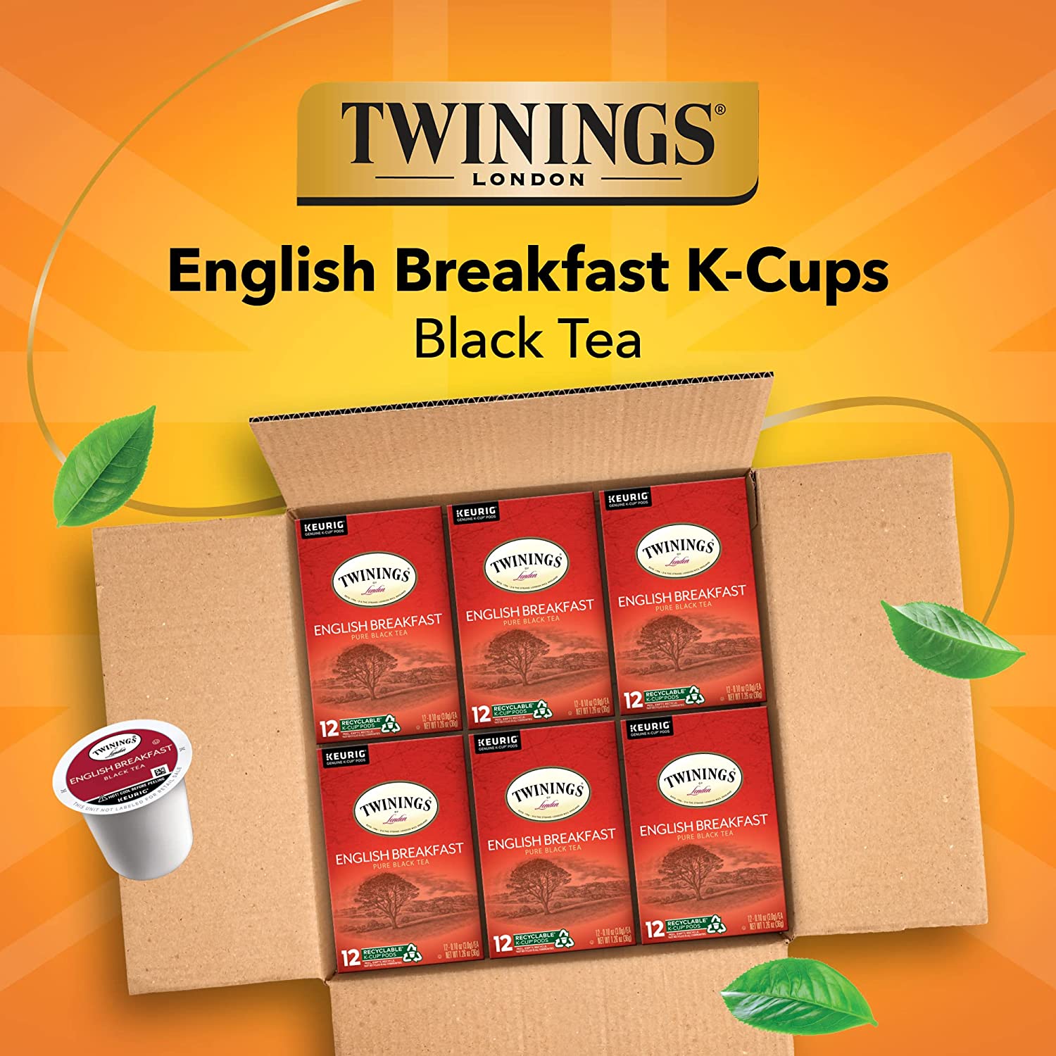 • TWININGS TRIBUTE TO THE IRISH K-CUP PODS: One box of 24 Irish Breakfast Tea Pods; Fine caffeinated black tea with robust, strong and bold flavour