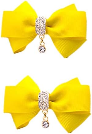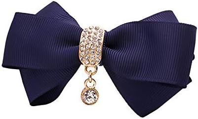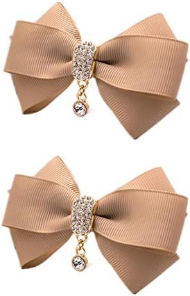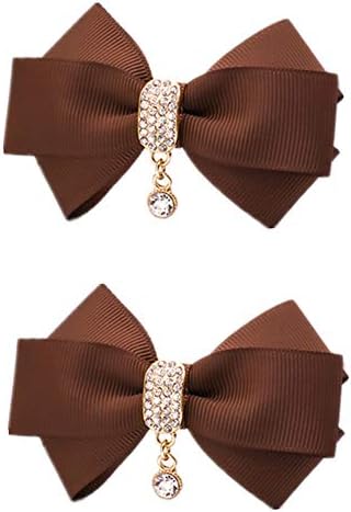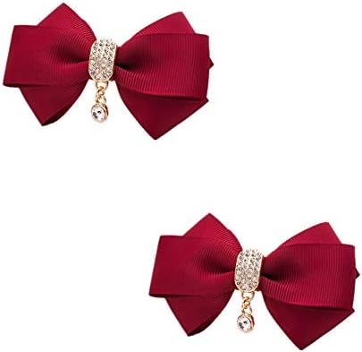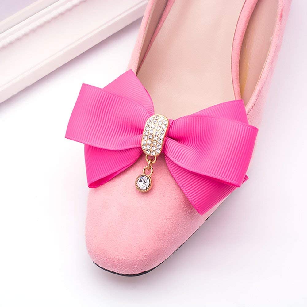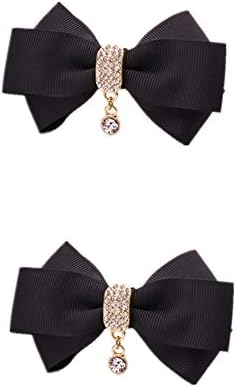 Rhinestone Crystal Dangle Center Ribbon Assorted Color Bow Shoe Clips Pair Removable Shoe Buckle (Black)