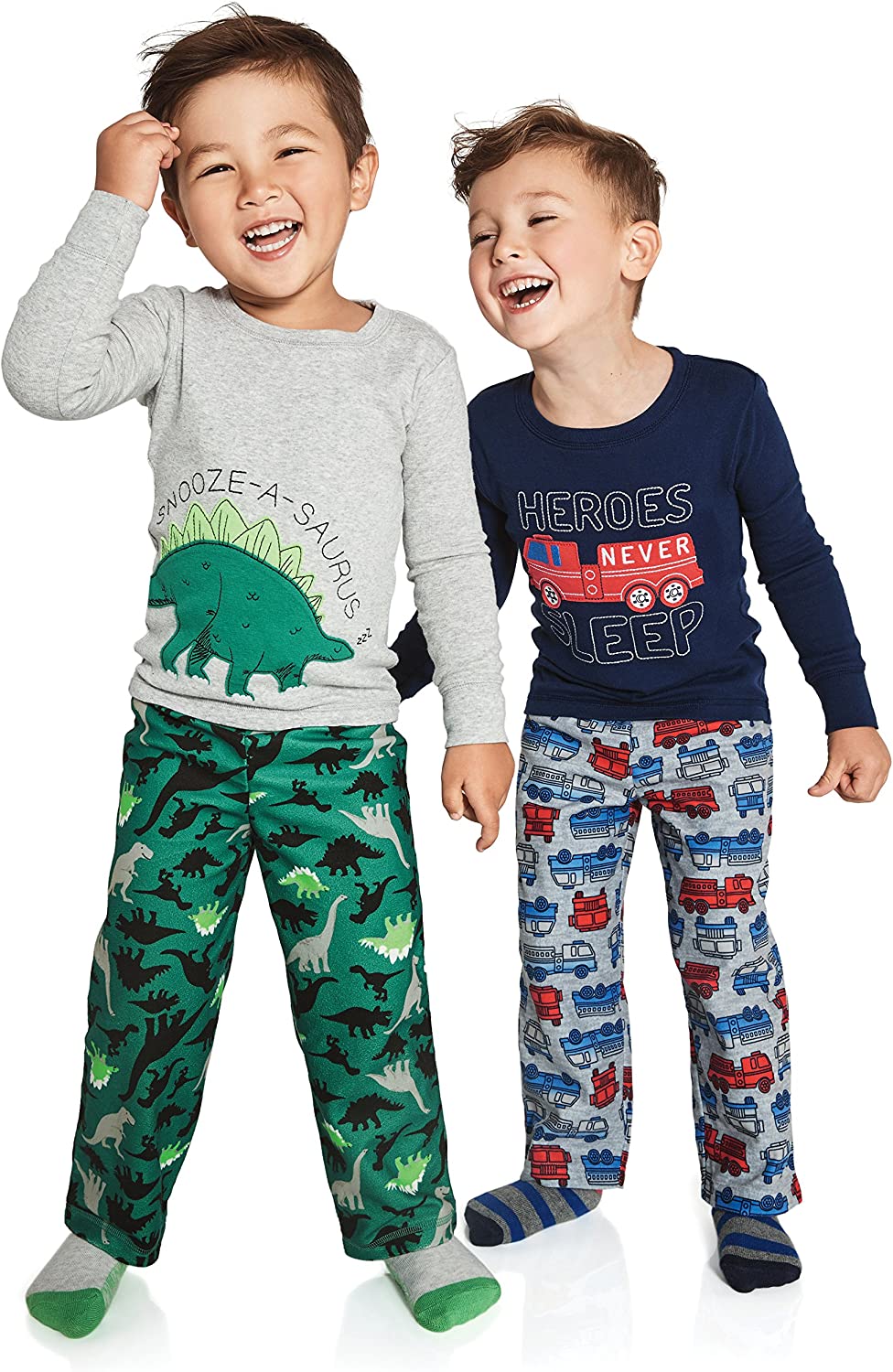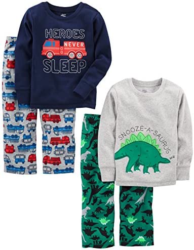 Simple Joys by Carter's Boys and Toddlers' 4-Piece Pajama Set (Cotton Top & Fleece Bottom)