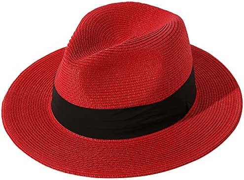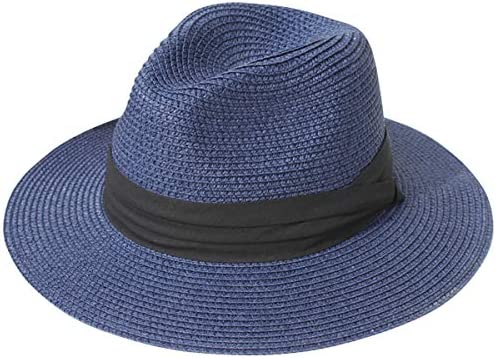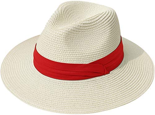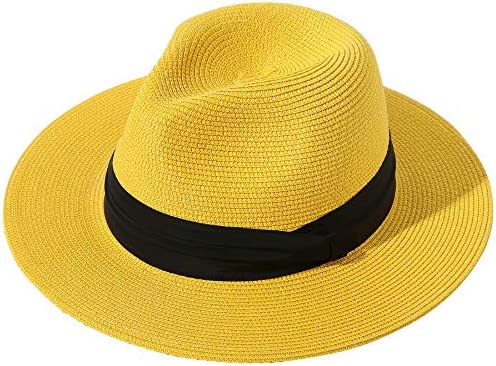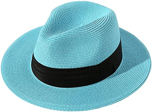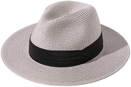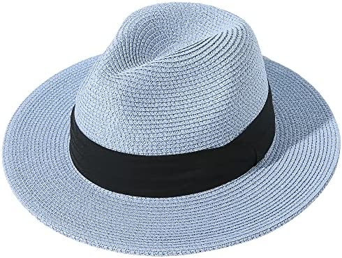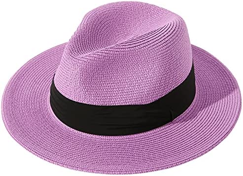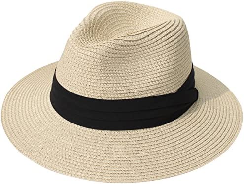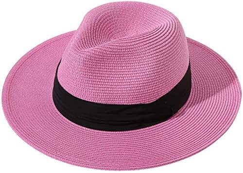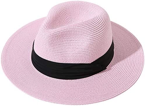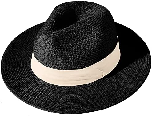 Lanzom Women Wide Brim Straw Panama Roll up Hat Fedora Beach Sun Hat UPF50+