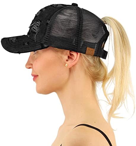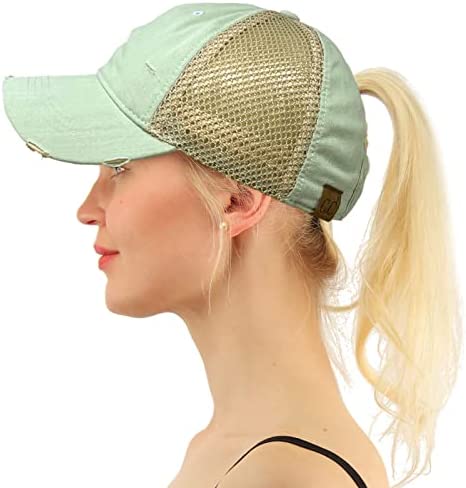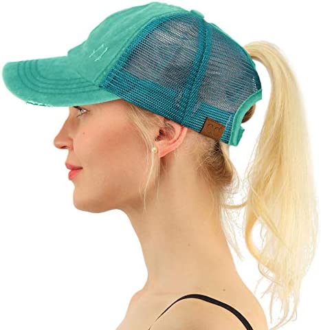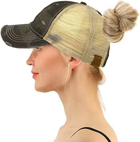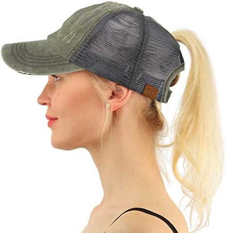 C.C Ponytail Messy Buns Trucker Ponycaps Plain Baseball Visor Cap Dad Hat