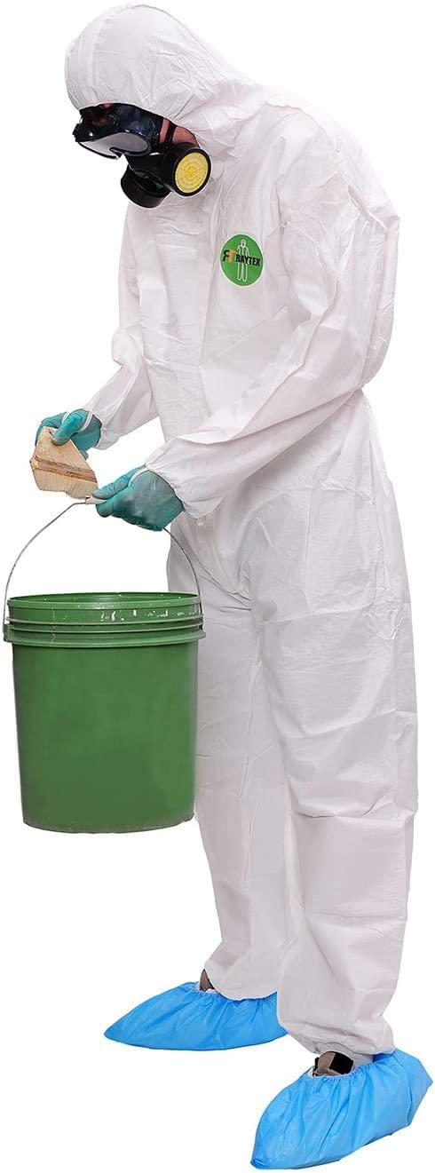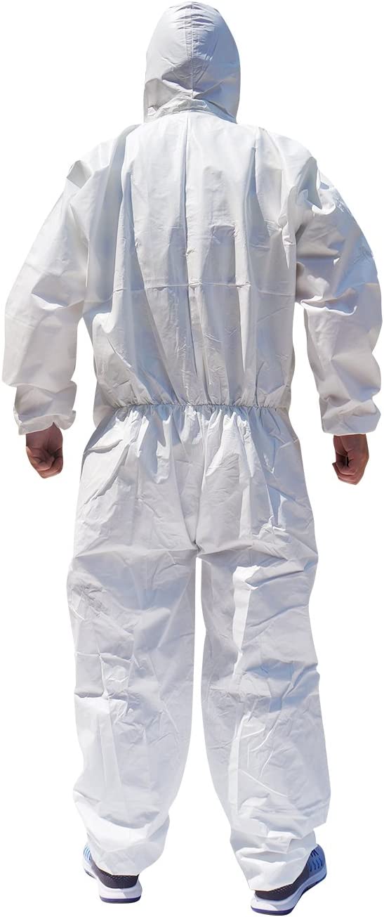 Raygard 30203 Microporous Disposable Coveralls Protective Breathable Hooded Suit with Elastic Cuffs, Ankles and Waist,Zip Front Opening, Serged Seams for Spray Paint Chemical Industrial(X-Large,White)
