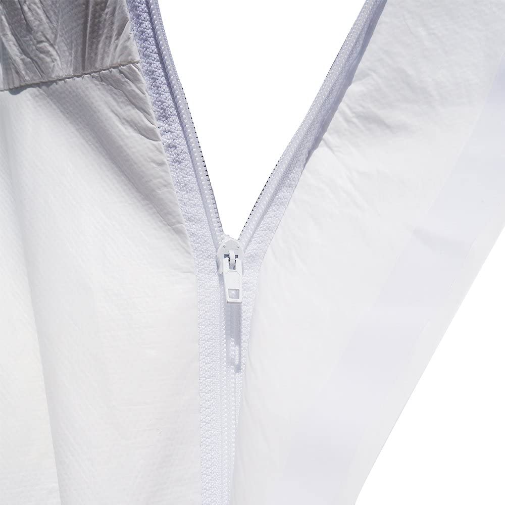 • Elastic at Cuffs,ankles,waist design;Zip front opening,serged seams and attached hood help reduce exposure