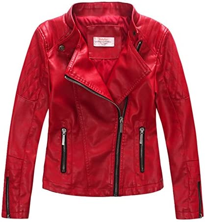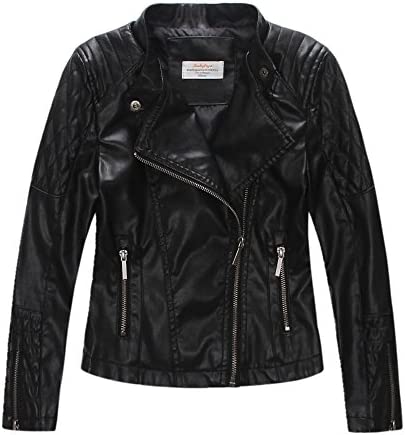 Grils Moto Bomber Faux Jackets, Zipper Closure, Pockets on Both Sides of The Waist, Stand Collar, Short Waist Style.