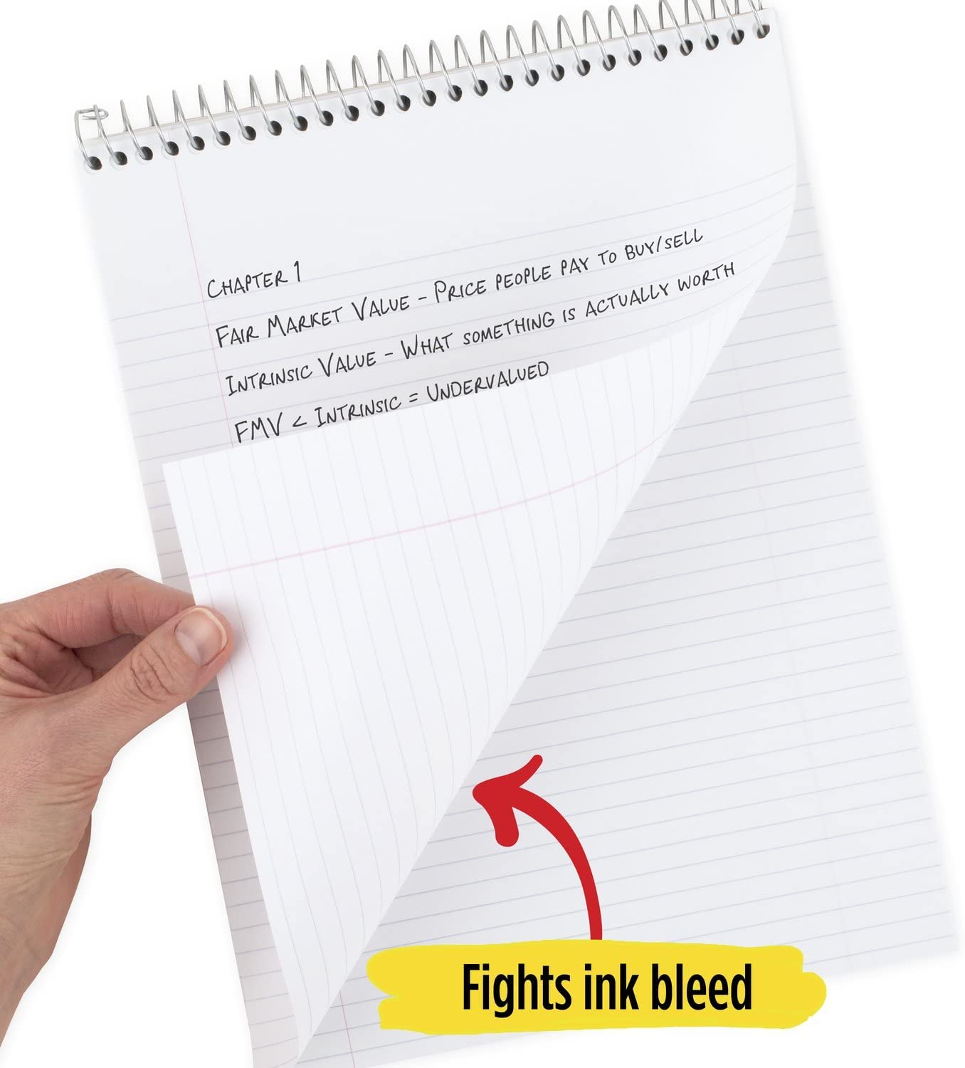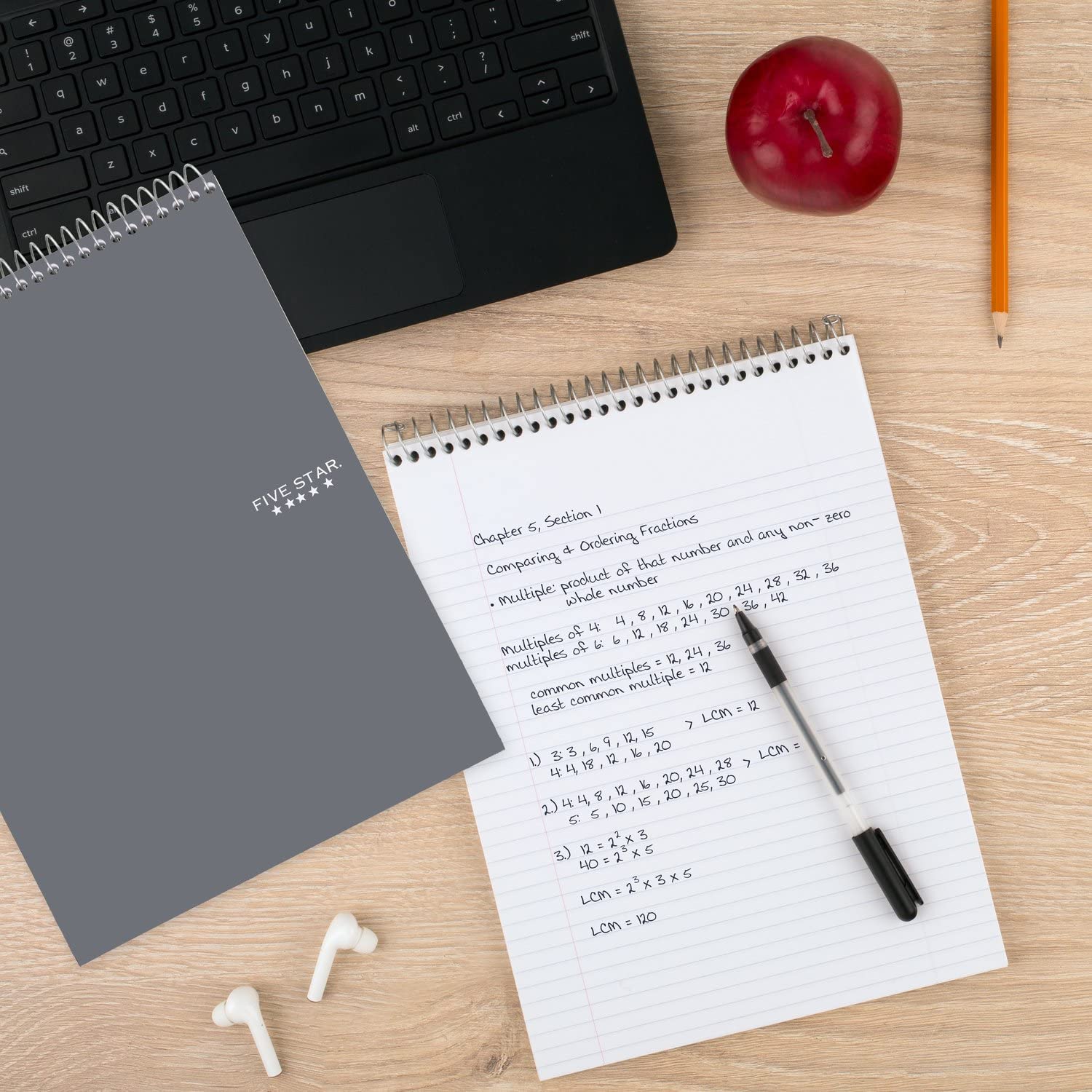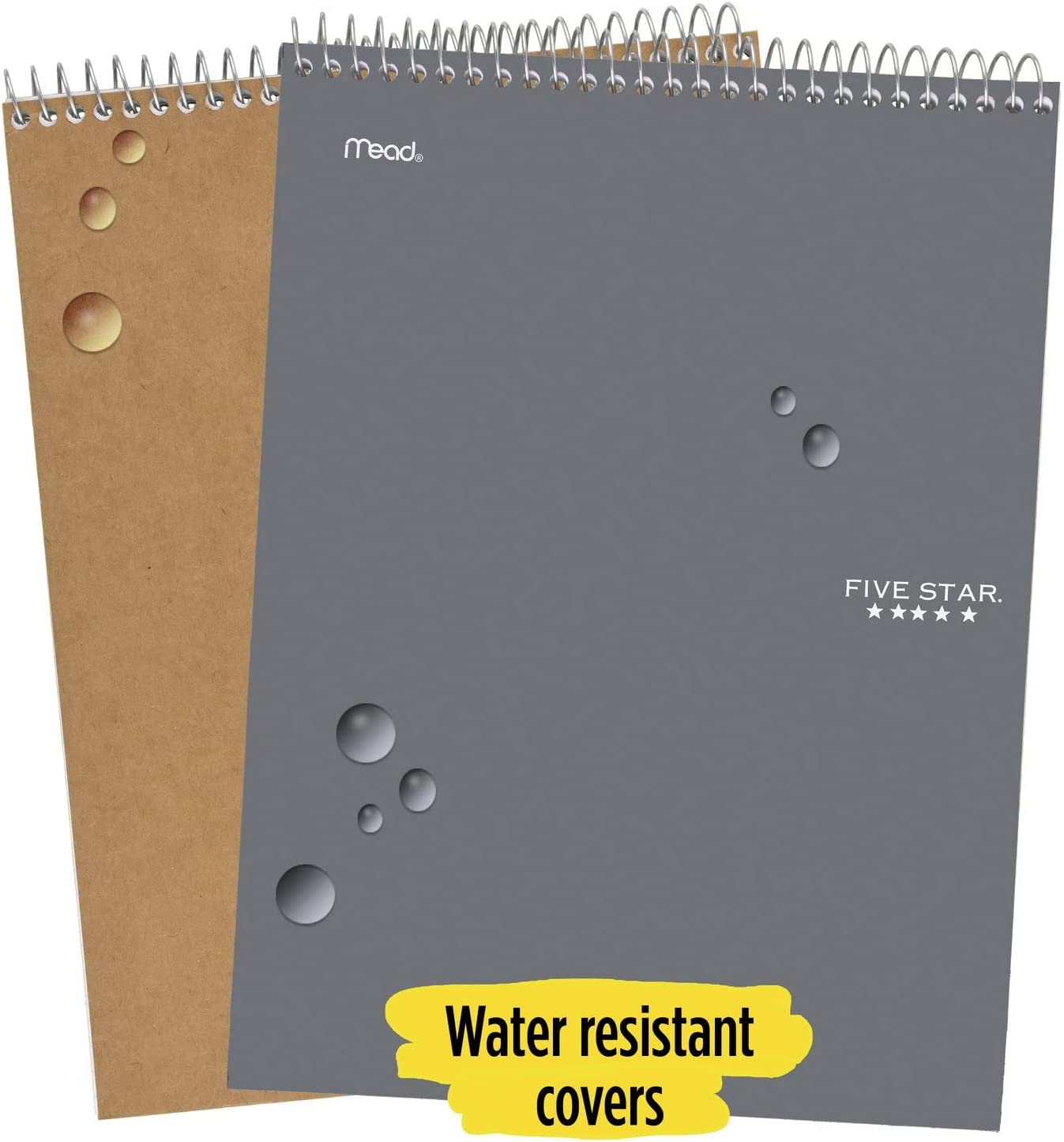 LASTS ALL YEAR. GUARANTEED!* The Five Star Top Bound Note Pad makes it easy to take notes and jot down ideas throughout the year. This 1 subject notebook has 100 double-sided, college ruled sheets that fight ink bleed and are perforated for easy tear out. Sheets measure 8 1/2" x 11" when torn out. The covers are water resistant to protect your notes, while our Spiral Lock wire helps prevent snags on clothes and backpacks. The top bound spiral is great for left-handed notetaking. This note pad is made with SFI certified paper. Plus, it is recyclable when you are done taking notes. 6 pack available in Amethyst Purple, Sedona Orange, Seaglass Green, Tidewater Blue, Gray and Black.