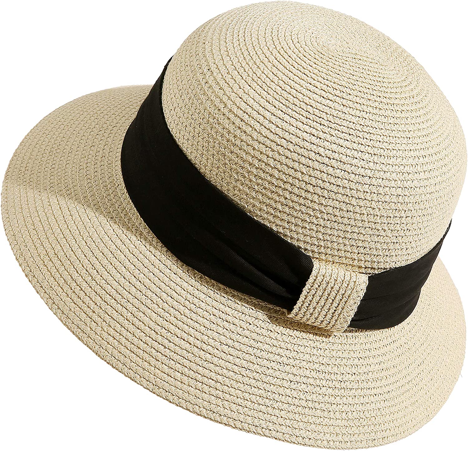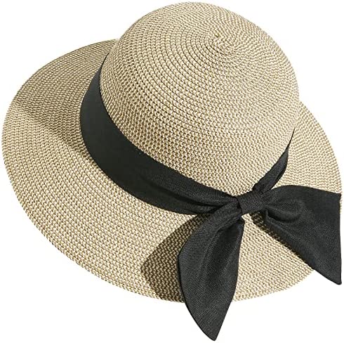 Lanzom Sun Hats for Women Wide Brim Straw Hat Summer Beach Hat Foldable Packable Cap for Travel Outdoor