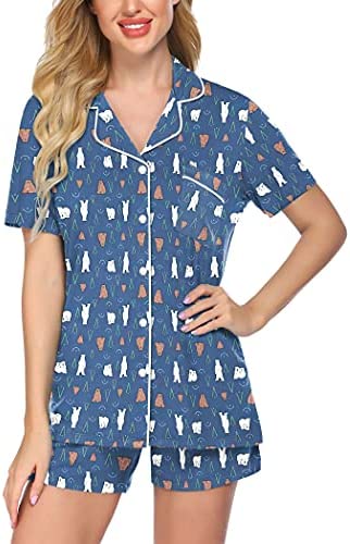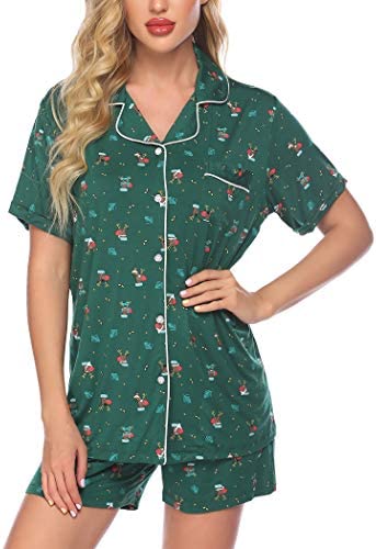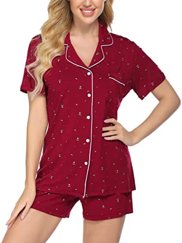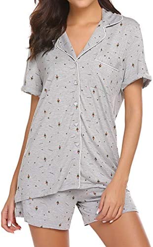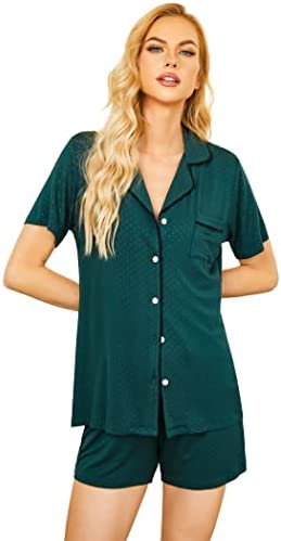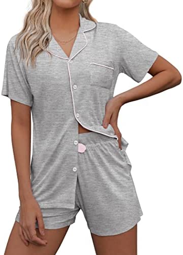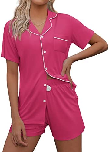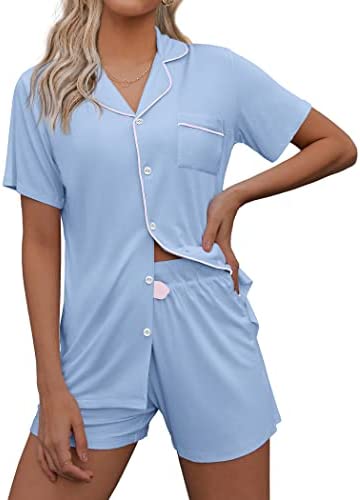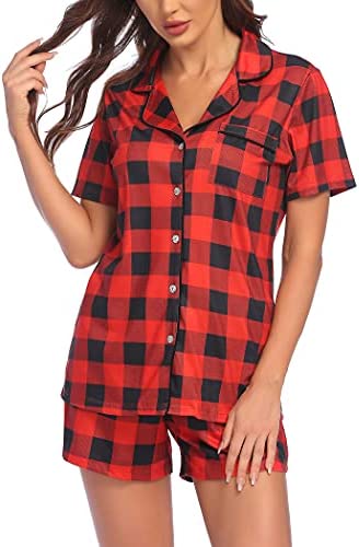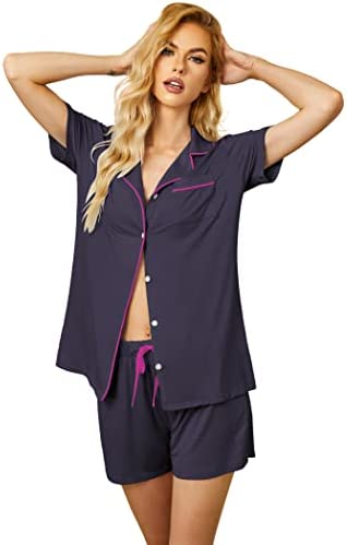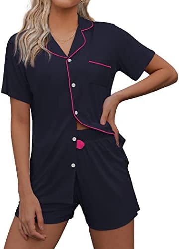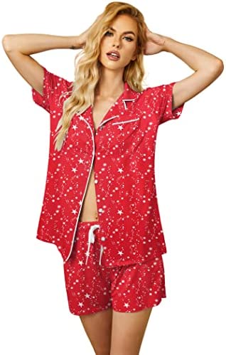 • BEST GIFT:Drift off to dreamland in this silky smooth pajama set with button down tops and cute boxer shorts,enjoying cozy time at home,this short sleeve pj set can always be the first choice as a gift to your girlfriends,your mom, your family and friends.