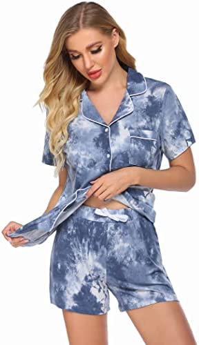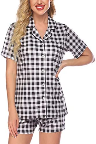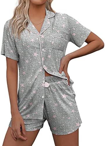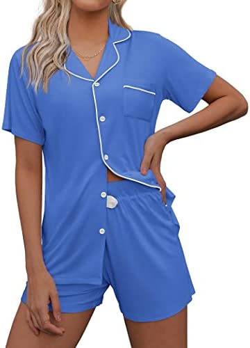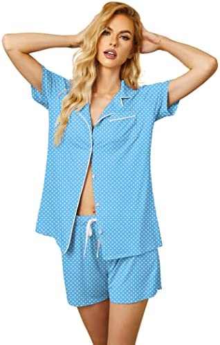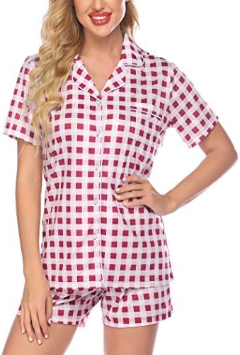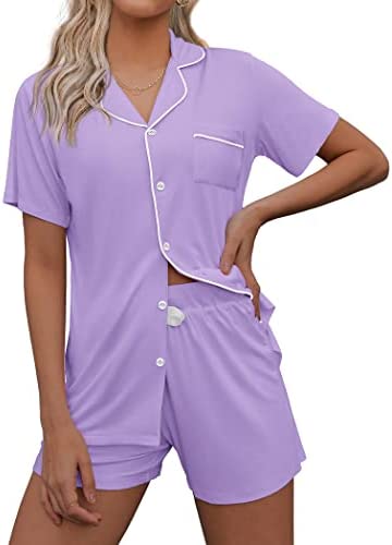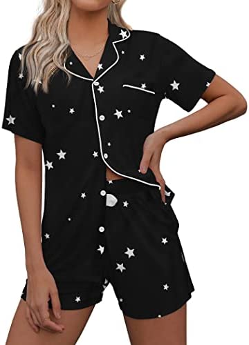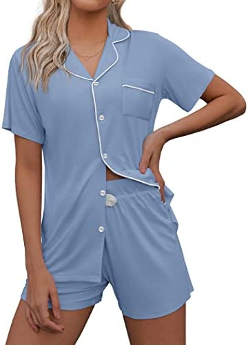 Ekouaer Pajamas Women Short Sleeve Sleepwear Button Down Loungewear Soft Pjs Shorts Set