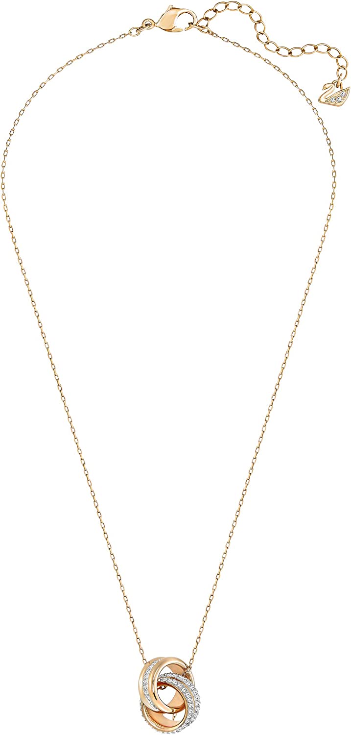 • Items delivered: 1 x Swarovski Further Collection necklace, 16 1/2 inch rose gold tone-plated chain, 3/8 x 5/8 inch clear crystal pavé circular design pendant, with Swarovski necklace box