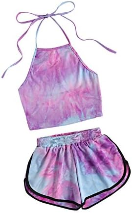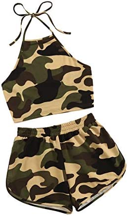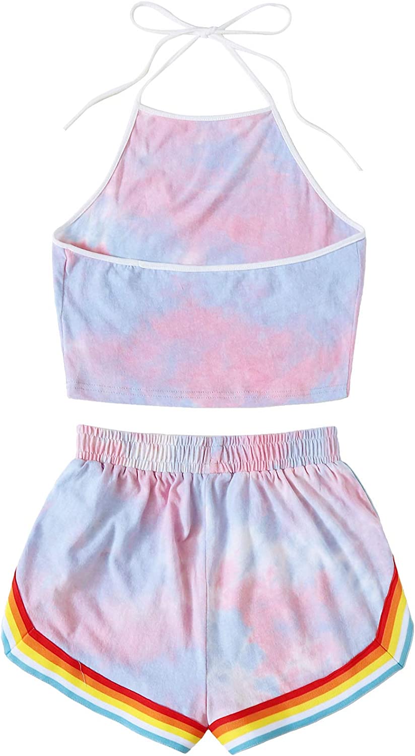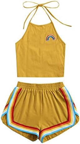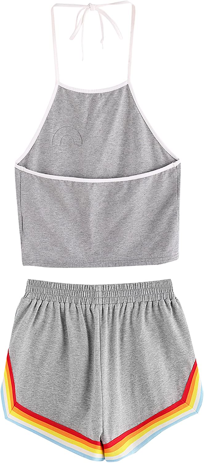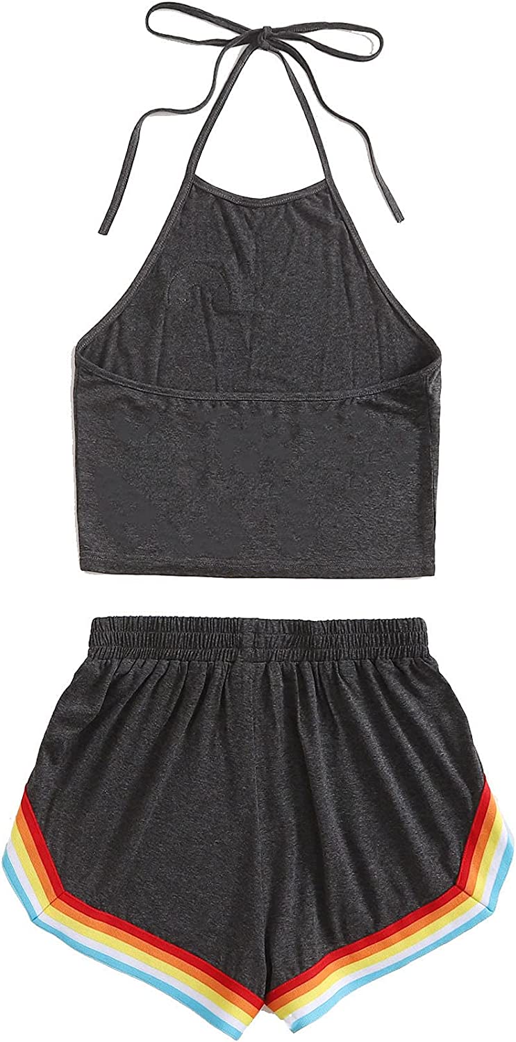 SweatyRocks Women's 2 Piece Set Halter Crop Top and Shorts Set