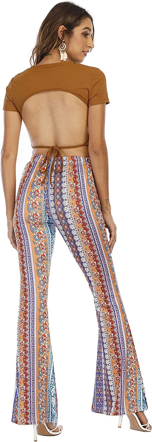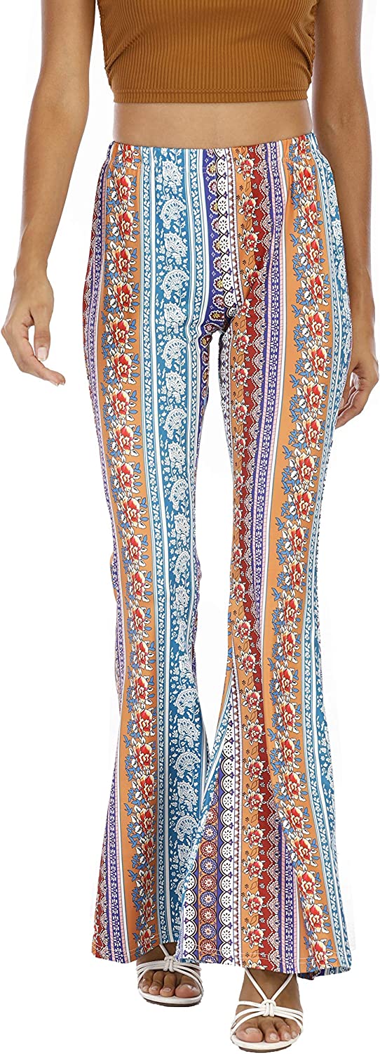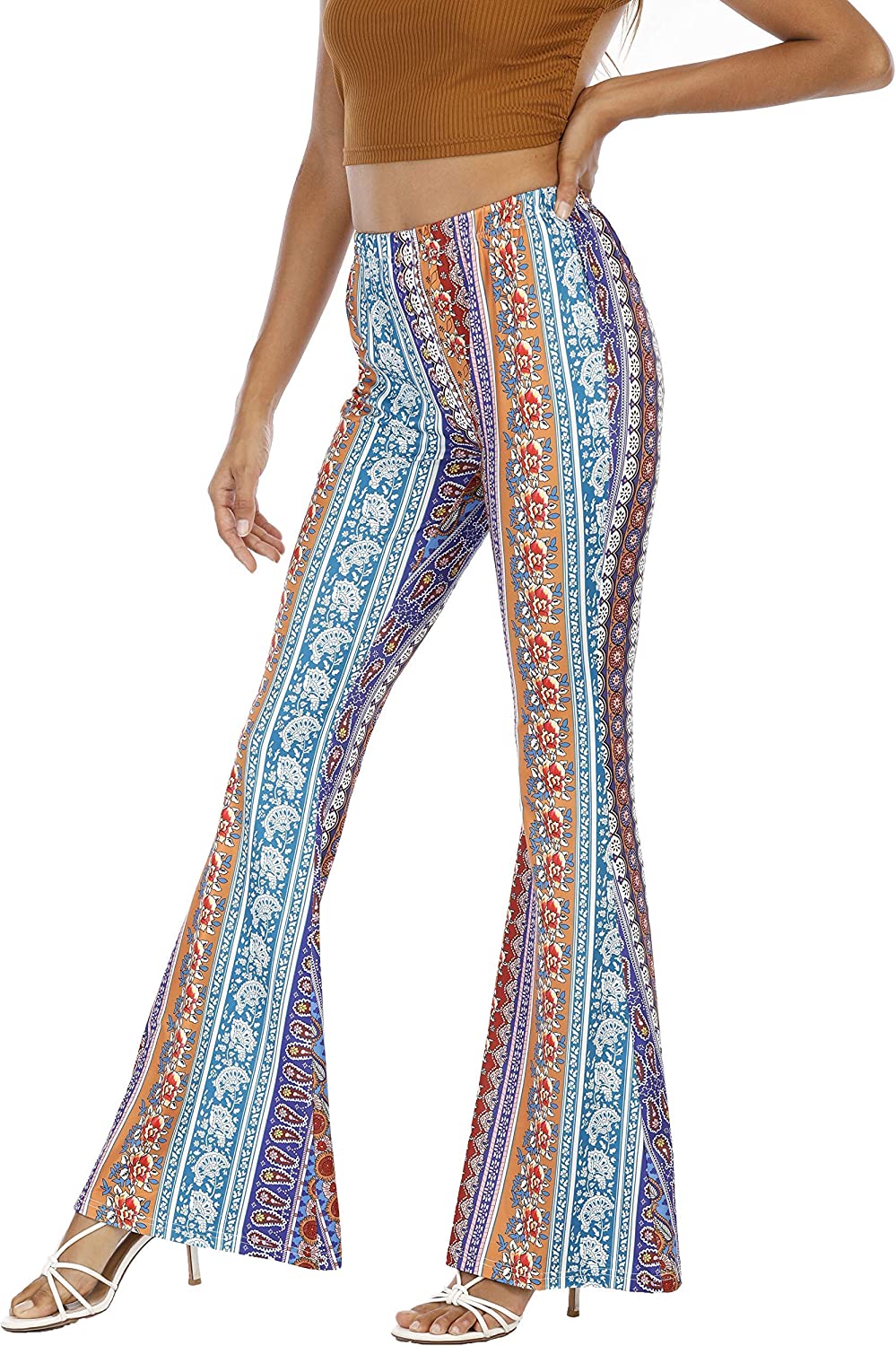 WSPLYSPJY Women's Print Stretch Bell Bottom Flare Palazzo Pants Trousers
