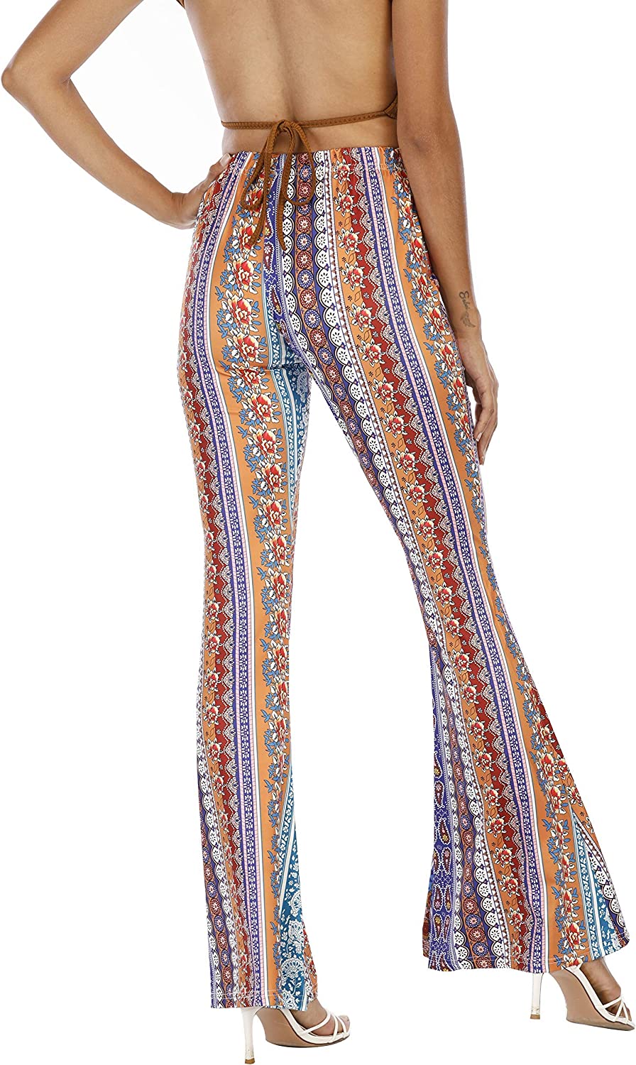 • Flare Pants for Women feature with Ethnic Tribal paisley floral print, Fit and Flare Design, High and Elastic Waist, Hip Package, Floor Length and Wide Leg Bottoms; This Floral Flare Leggings are great to worn with T-Shirt, Blouse, Crop Top, Cami Tank and high heels.