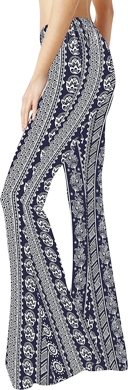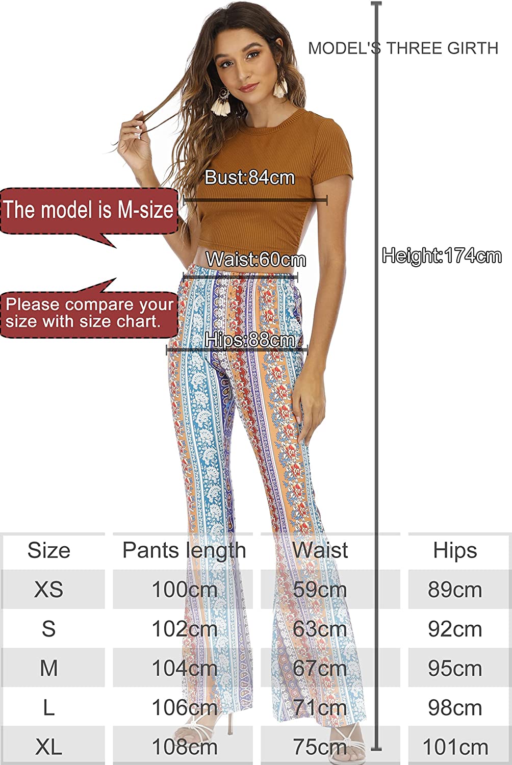 • Flare Pants for Women feature with Ethnic Tribal paisley floral print,Fit and Flare Design,High and Elastic Waist,Hip Package,Floor Length and Wide Leg Bottoms;