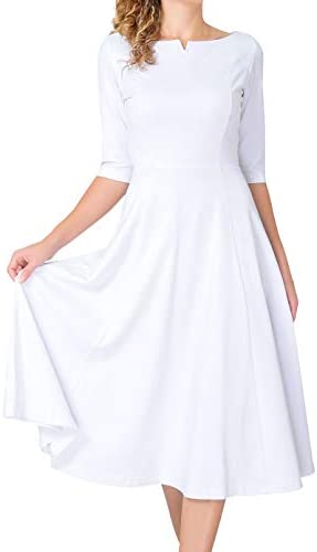 • DESIGNED BY HEARTS & CARVED BY SKILLFUL WORKERS to ensure the best quality from design to craftsmanship with EFFORTLESSLY ELEGANT MODEST FEATURES for classic women: with this simple design by our famous designer team, it features half sleeves, slot neck, midi tea length, fit-and-flare silhouette, hidden back zipper, you will be confident enough to show your decent image.