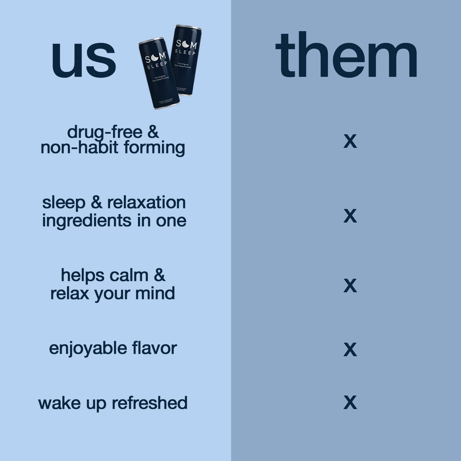 • We get it. We like our morning cup of coffee or energy drink, too. But too much caffeine can make it difficult to fall asleep at night. That’s why we created Som, a clean alternative to existing sleep aids that won't leave you groggy the next morning.