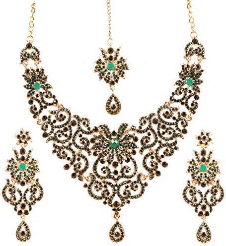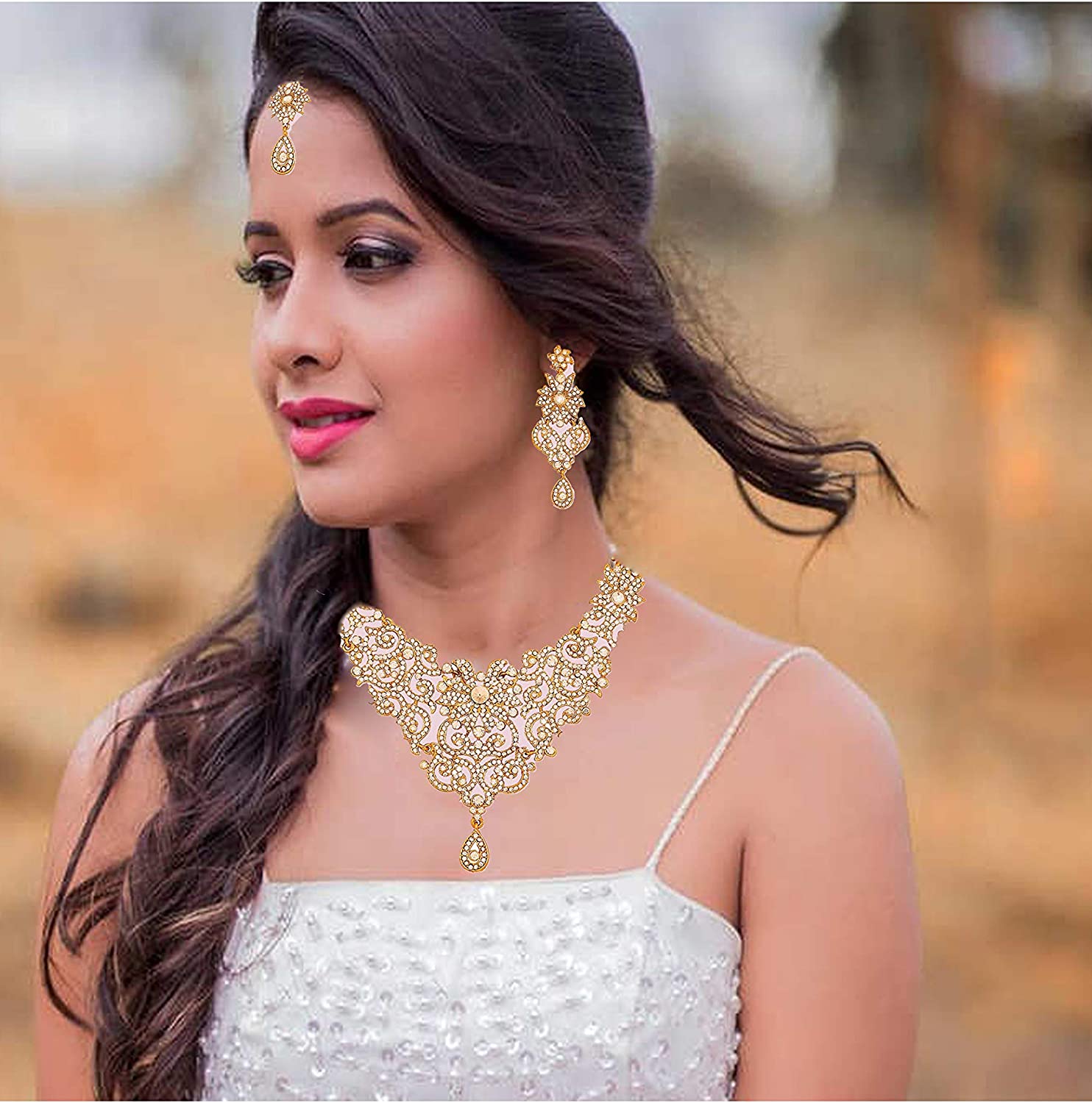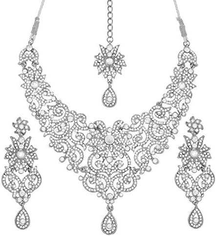 Touchstone Indian Bollywood Gorgeous intricate Workmanship Sparkling White Colorful Rhinestone crystal wedding Designer Jewelry Necklace Set In Gold or Silver Tone For Women.