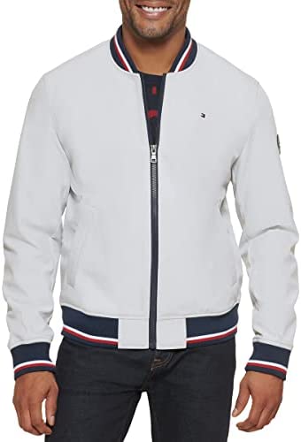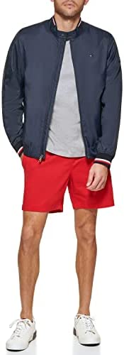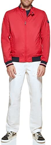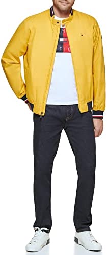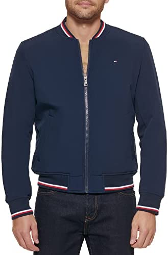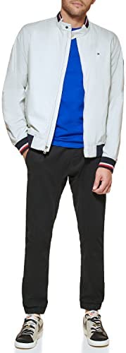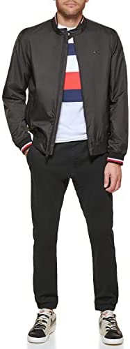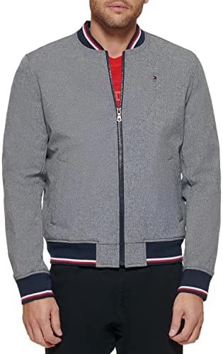 - STYLISH FEATURES: Tri-color contrast rib knit collar, cuffs, and hem; Tommy Hilfiger Signature Flag at left chest; Tommy Hilfiger rubber patch on left sleeve