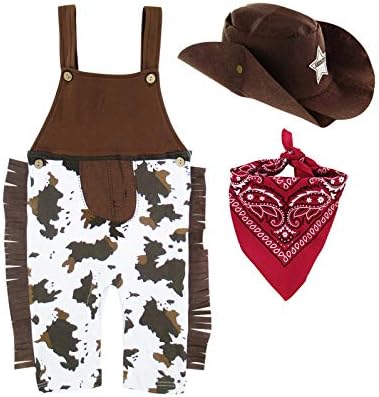 A&J DESIGN Baby Boys' Western Cowboy Romper Sets with Scarf and Hat