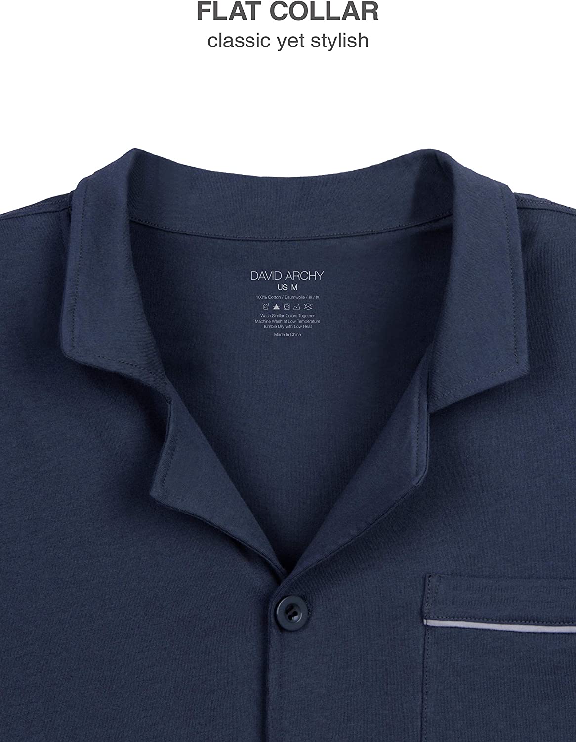 DAVID ARCHY Men's Cotton Sleepwear Button-Down Pajamas Set