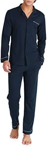 Button-down Collar: Long sleeve pajamas for men with pocket for a classic look