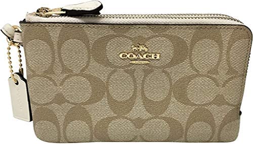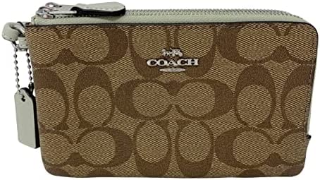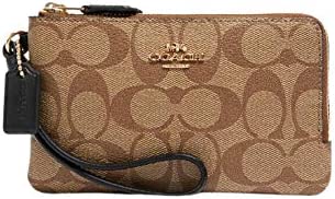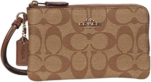 Our Signature canvas Double Corner Zip wristlet is a slender design that holds cash and cards on one side and a phone on the other.