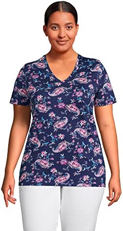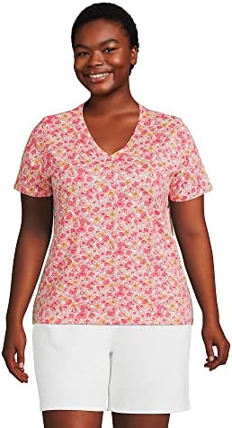 Lands' End Women's Relaxed Supima Cotton Short Sleeve V-Neck T-Shirt
